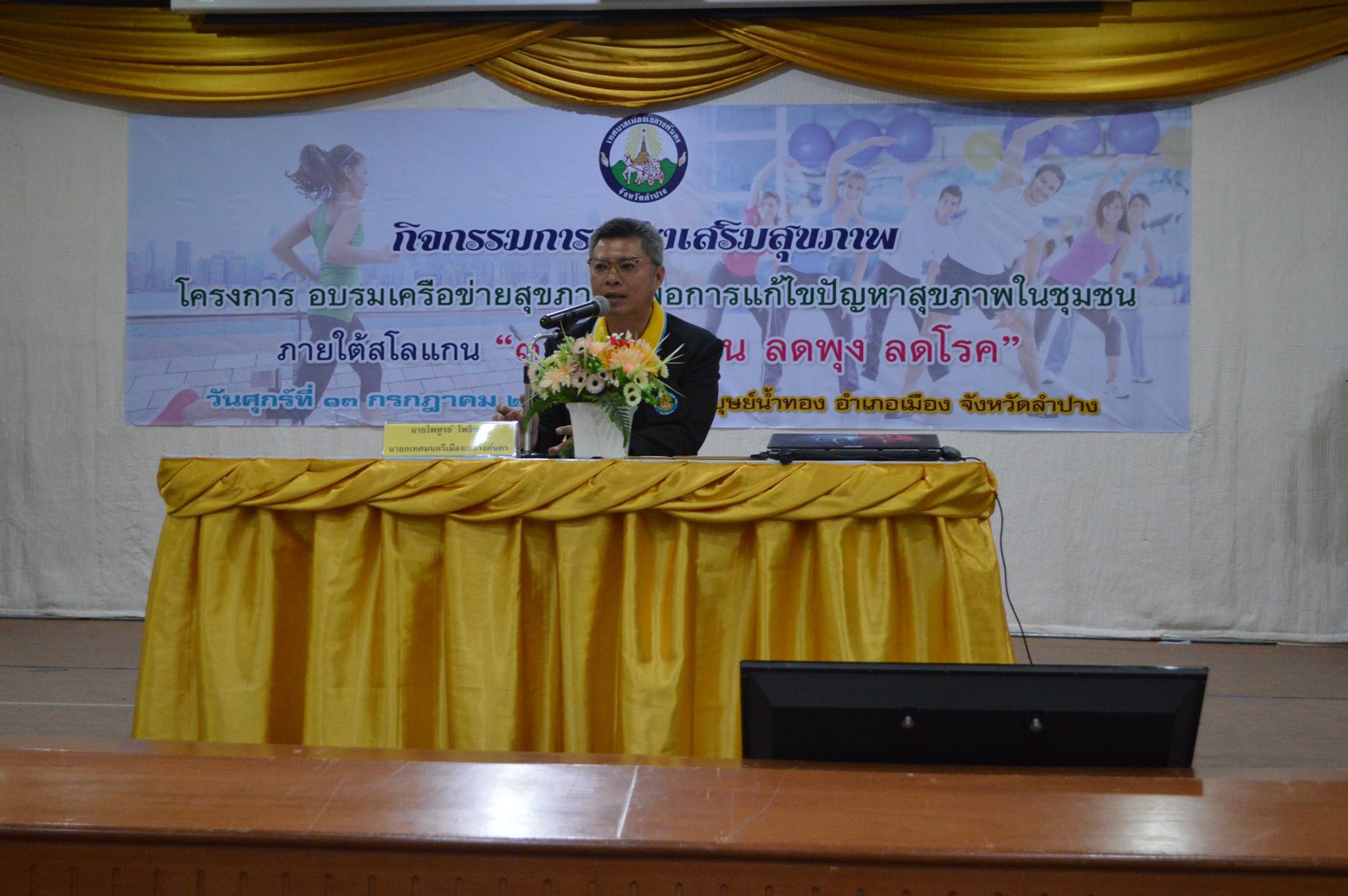 เมื่อวันศุกร์ ที่ 13 กรกฎาคม 2561 เวลา 09.00 น. นายไพฑูรย์ โพธิ์ทอง นายกเทศมนตรีเมืองเขลางค์นคร เป็นประธานในพิธีเปิดกิจกรรม สร้างเสริมสุขภาพ พิชิตอ้วน ลดพุง ลดโรค ตามโครงการอบรมเครือข่ายสุขภาพในชุมชน โดยมีวัตถุประสงค์เพื่อแก้ไขปัญหาสุขภาพในชุมชน เสริมสร้างความรู้เกี่ยวกับการปรับพฤติกรรมการบริโภค และพฤติกรรมการออกกำลังกายในการควบคุมภาวะน้ำหนักเกินที่ถูกต้อง และเพื่อให้เครือข่ายช่วยขับเคลื่อนกิจกรรมออกกำลังกายให้ครอบคลุมทุกชุมชน ซึ่งมีกลุ่มเป้าหมายคือเครือข่ายสุขภาพในเขตเทศบาลเมืองเขลางค์นครกว่า 500 คน เข้าร่วมกิจกรรม โดยได้รับเกียรติจากคณะผู้บริหาร สมาชิกสภาเทศบาลเมืองเขลางค์นคร หัวหน้าส่วนราชการร่วมเป็นเกียรติในพิธีเปิด ทั้งนี้ในช่วงภาคเช้าผู้เข้าร่วมกิจกรรมยังได้รับฟังทอล์คโชว์ในหัวข้อ 3 อ.พิชิตอ้วน ลดพุง ลดโรคจาก ดร.เทวินทร์ วารีศรี นักวิชาการสาธารณสุขชำนาญการจากศูนย์อนามัยที่ 2 จังหวัดสระบุรี และในภาคบ่ายมีการประกวดการออกกำลังกาย แกว่งแขนพิชิตอ้วน ลดพุง ลดโรค ณ ห้องประชุมโรงแรมบุษย์น้ำทอง อำเภอเมือง จังหวัดลำปาง