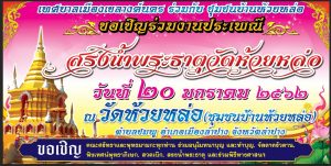 ในการนี้ จึงขอเชิญทุกท่านร่วมเป็นเกียรติและอนุโมทนาบุญในงานประเพณีสรงน้ำพระธาตุวัดบุญเกิด เวลา ๐๙.๐๐ น. เป็นต้นไป และวัดห้วยหล่อ เวลา ๑๐.๐๐ น. เป็นต้นไป