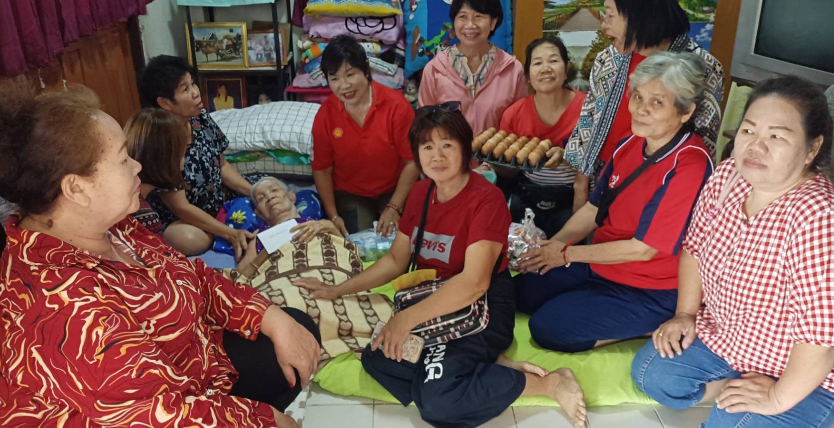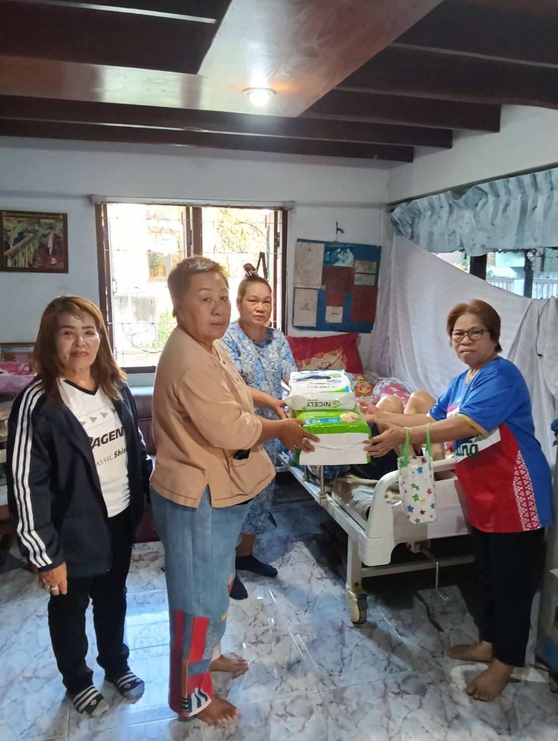 – กลุ่มสตรีลงพื้นที่เยี่ยมผู้ป่วยพร้อมมอบผ้าออมสำเร็จรูปให้แก่ผู้สูงอายุในชุมชน