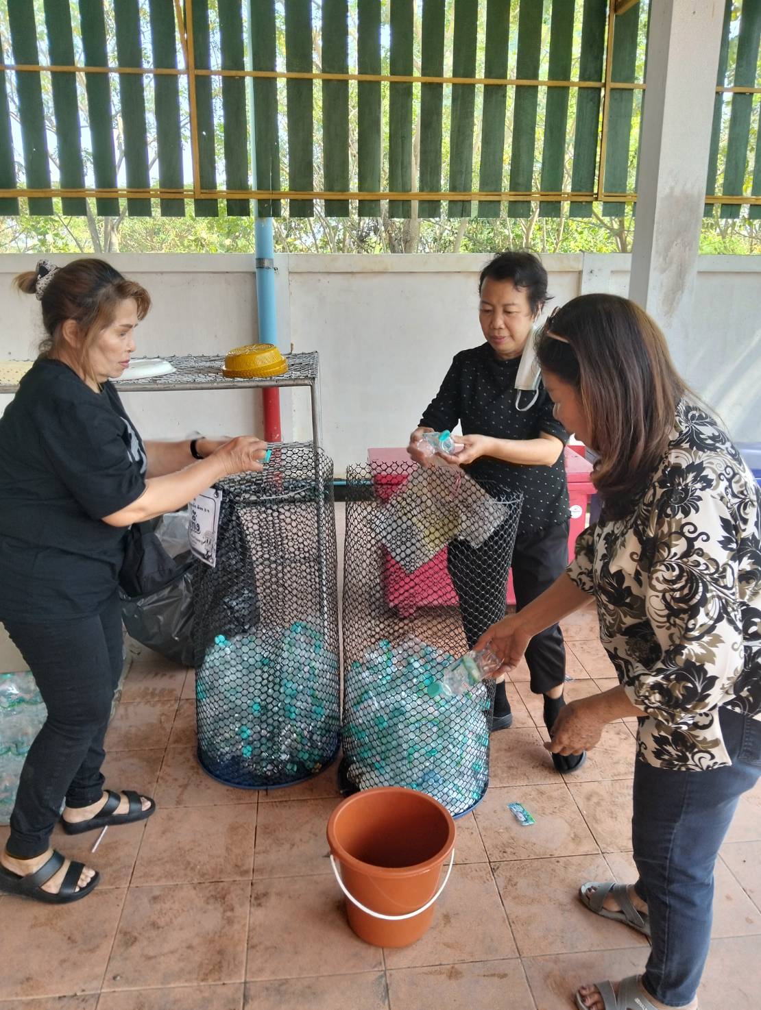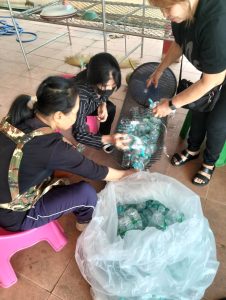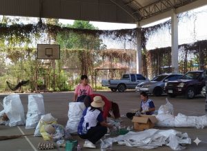 – กลุ่มสตรีร่วมกันคัดแยกขยะ