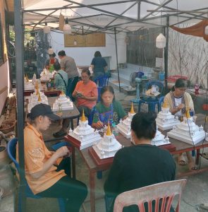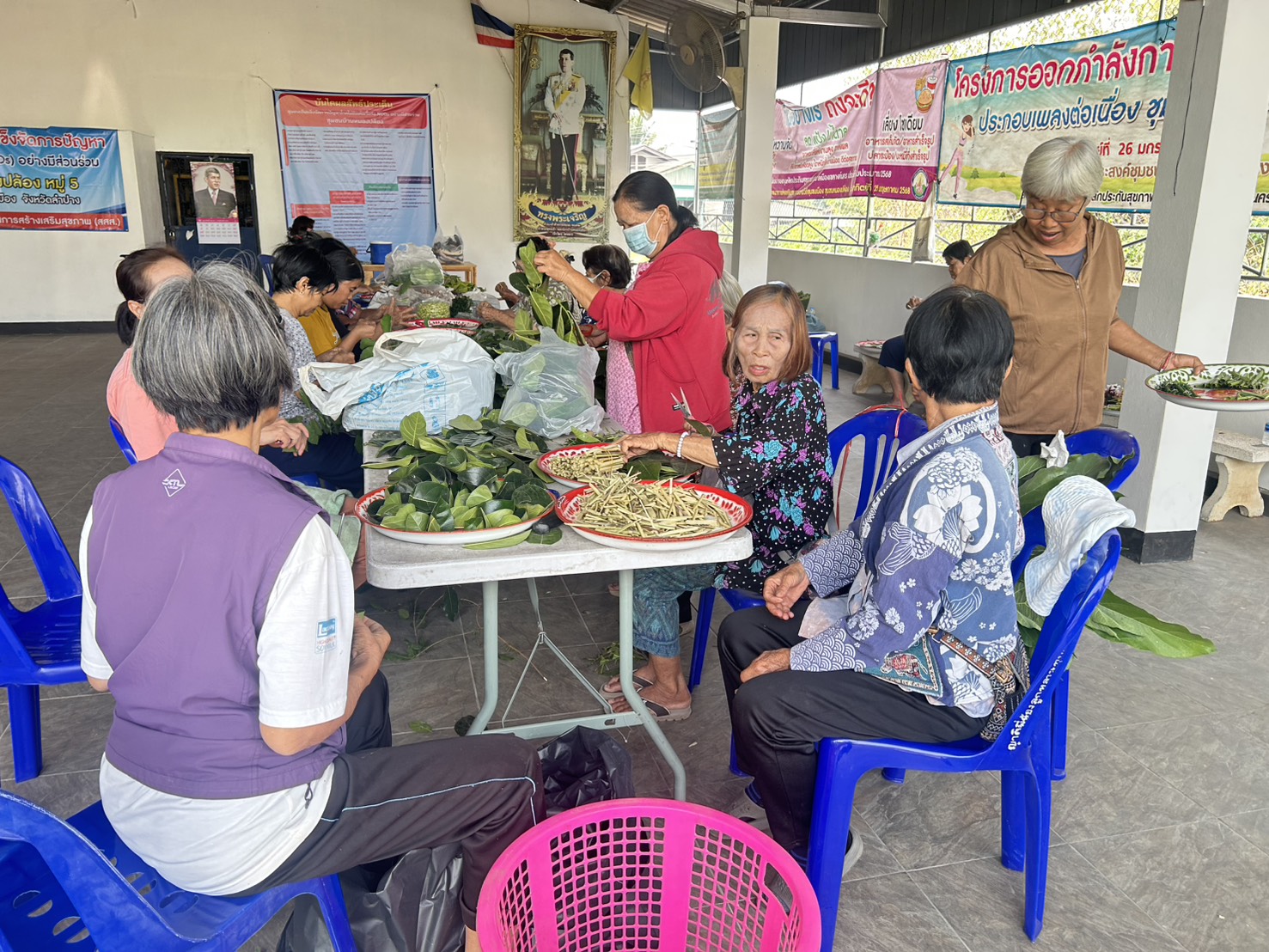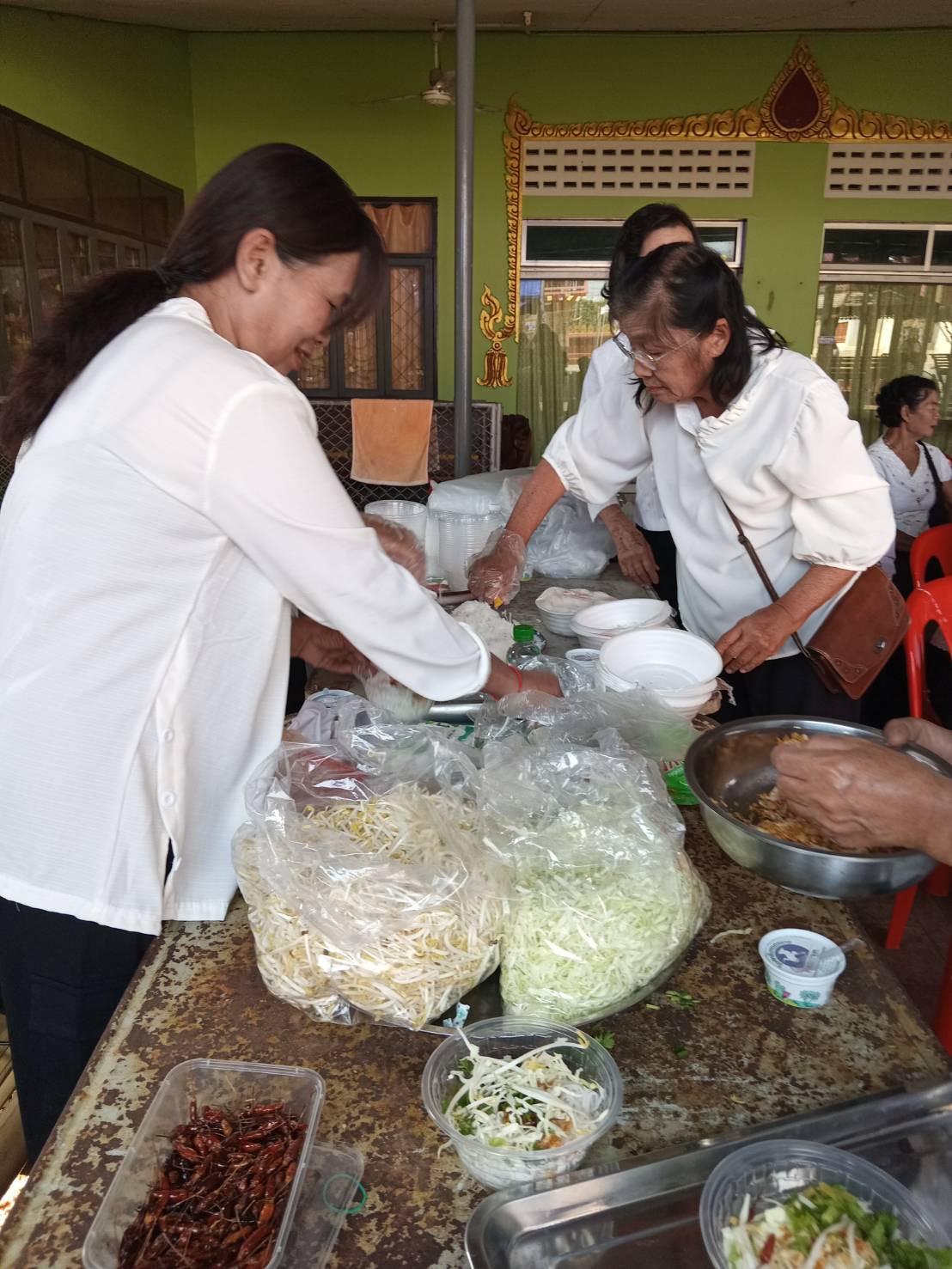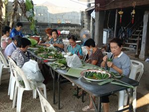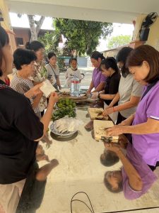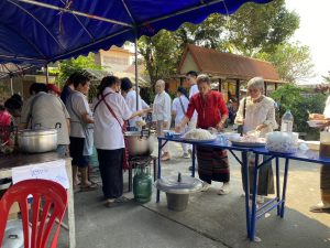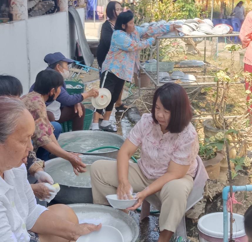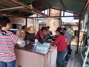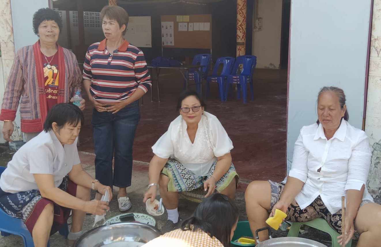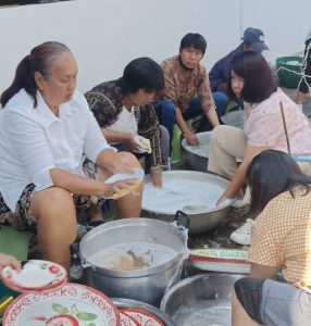 – กลุ่มสตรีรวมกลุ่มจัดเตรียมทำโรงทาน