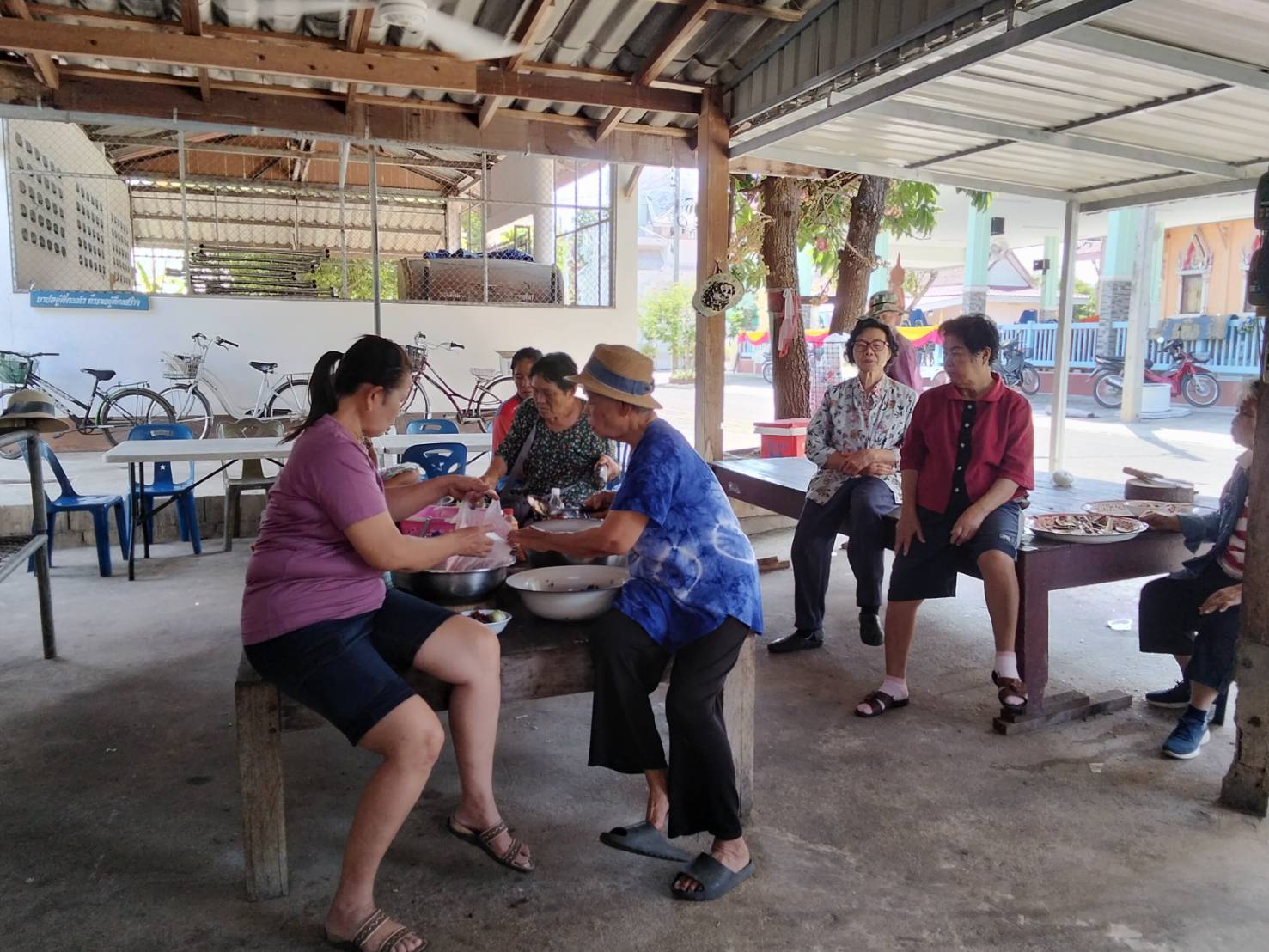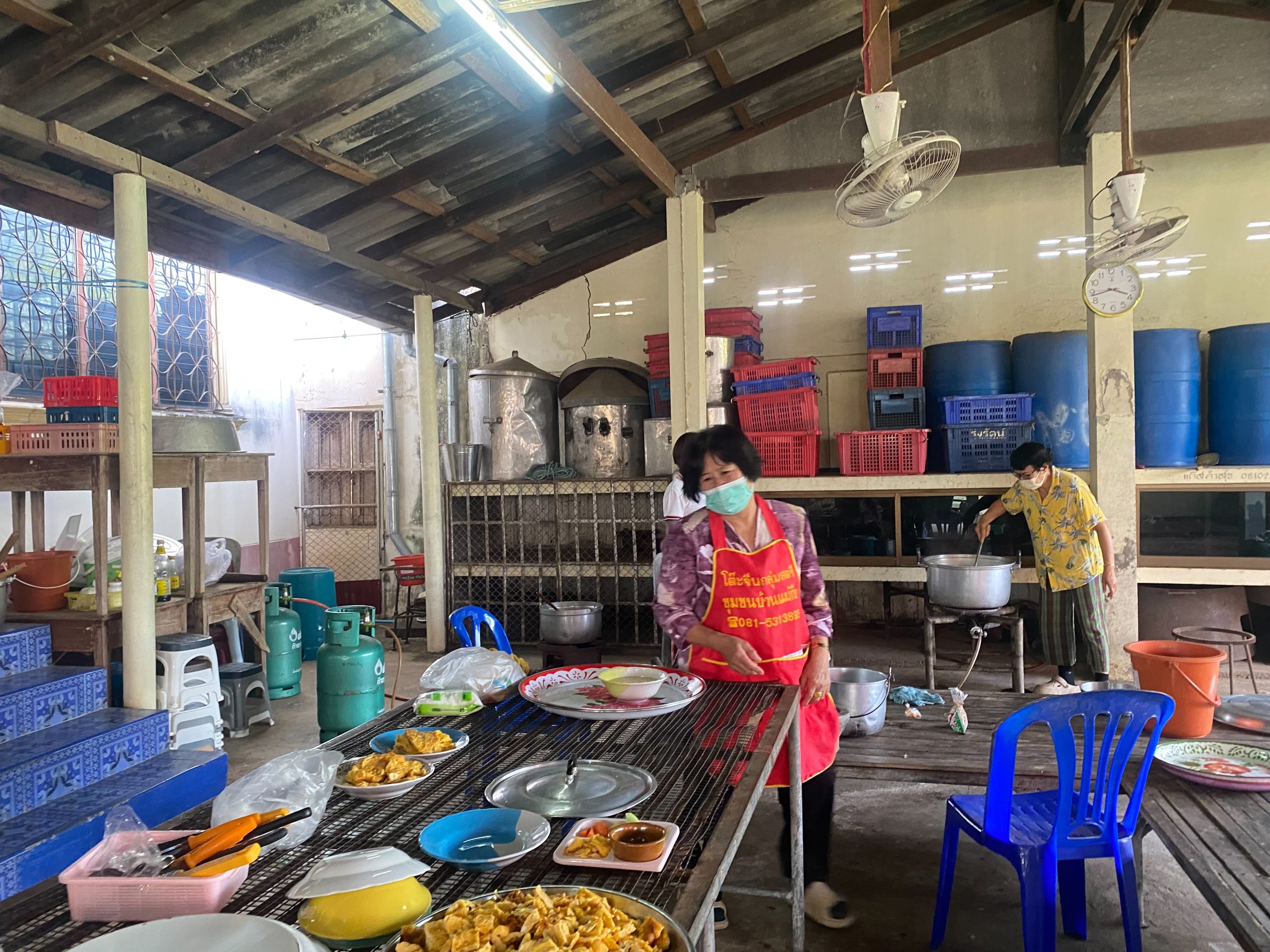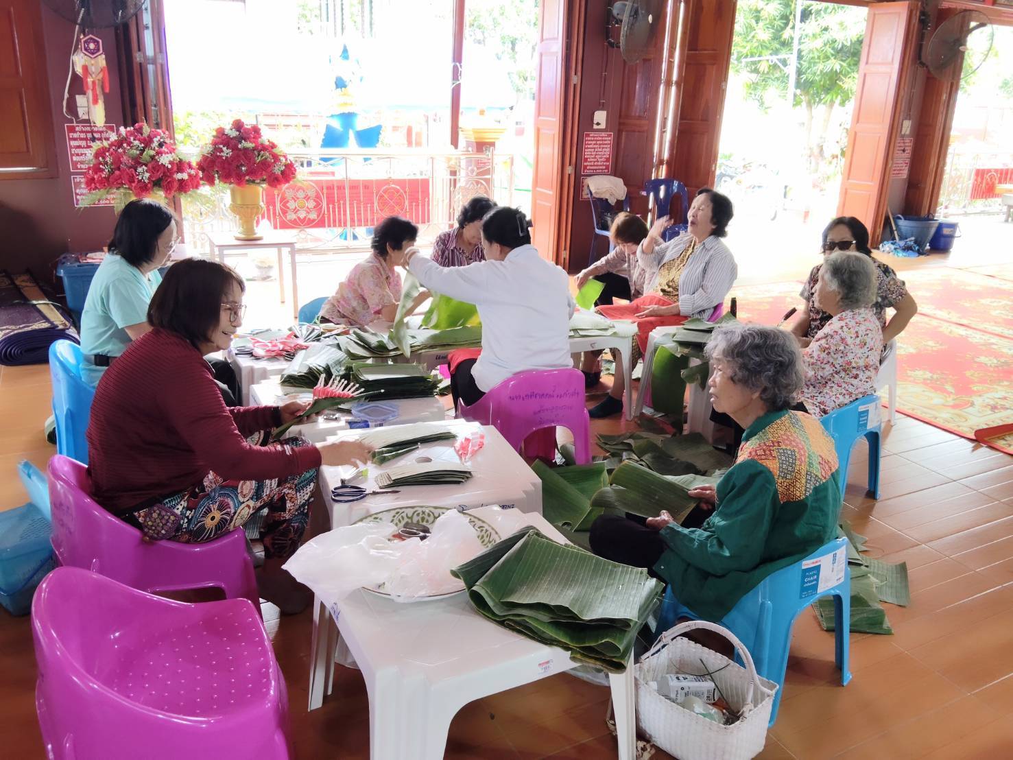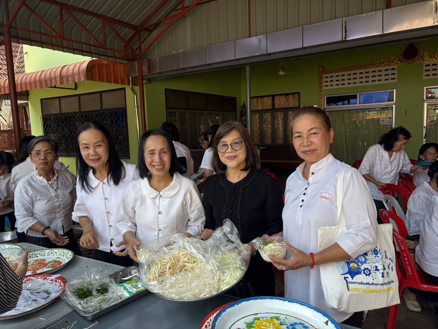 – กลุ่มสตรีรวมกลุ่มจัดเตรียมทำโรงทาน