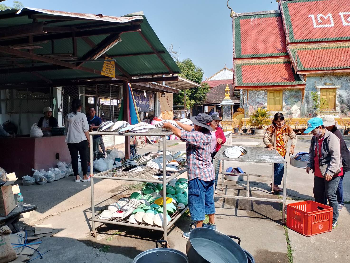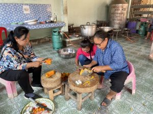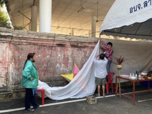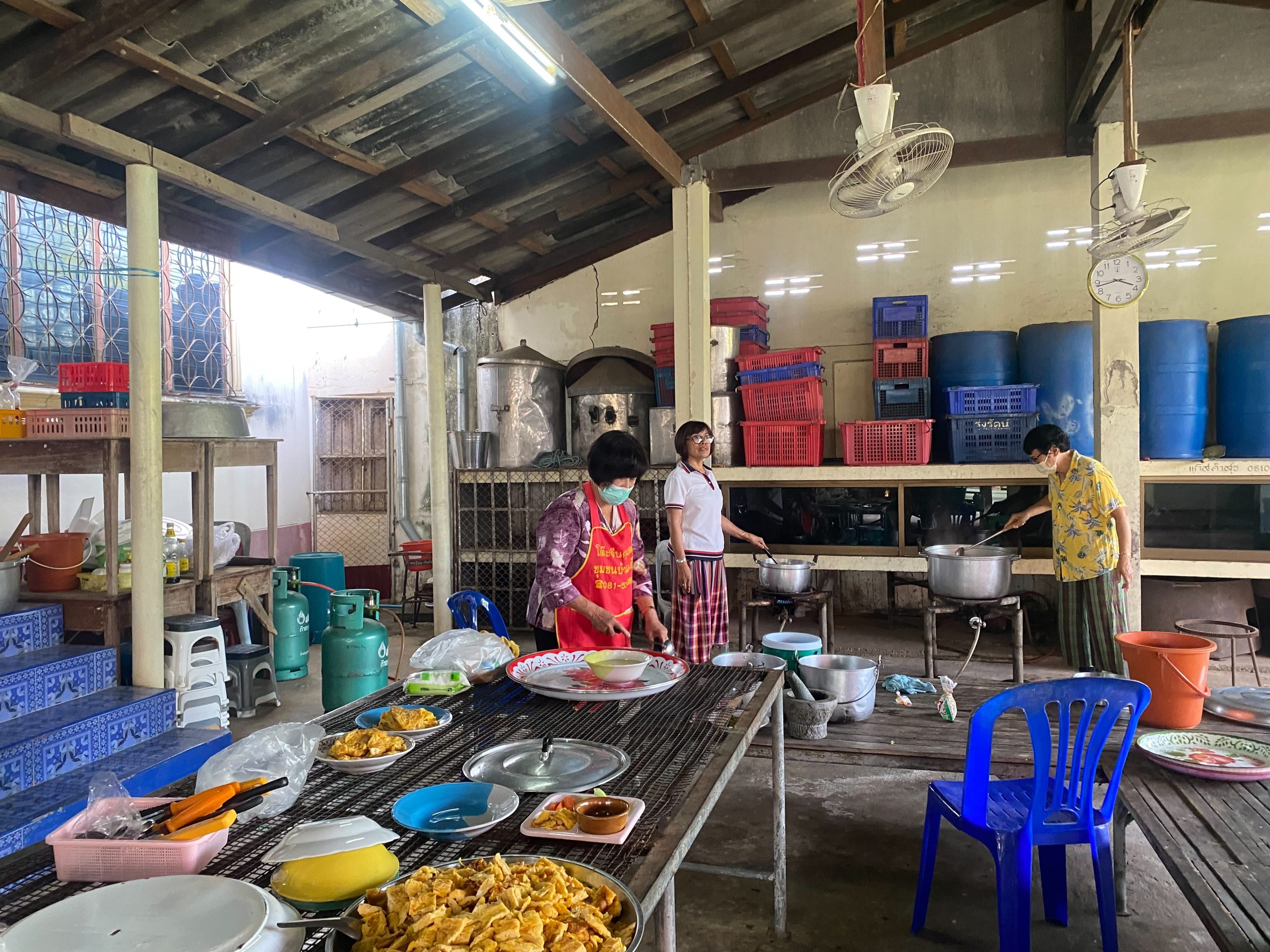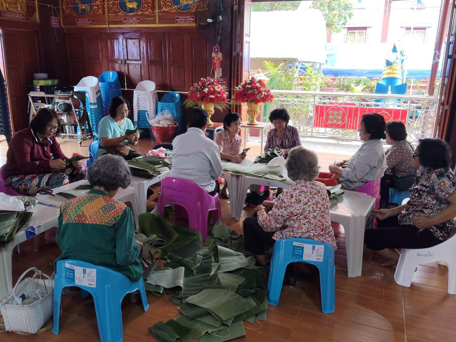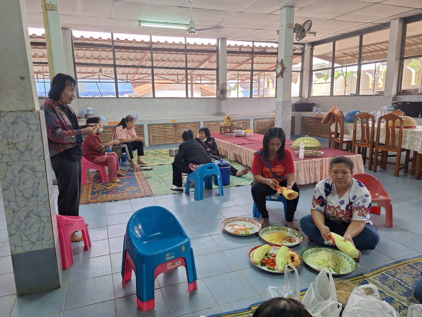 – กลุ่มสตรีรวมกลุ่มจัดเตรียมทำโรงทาน