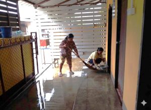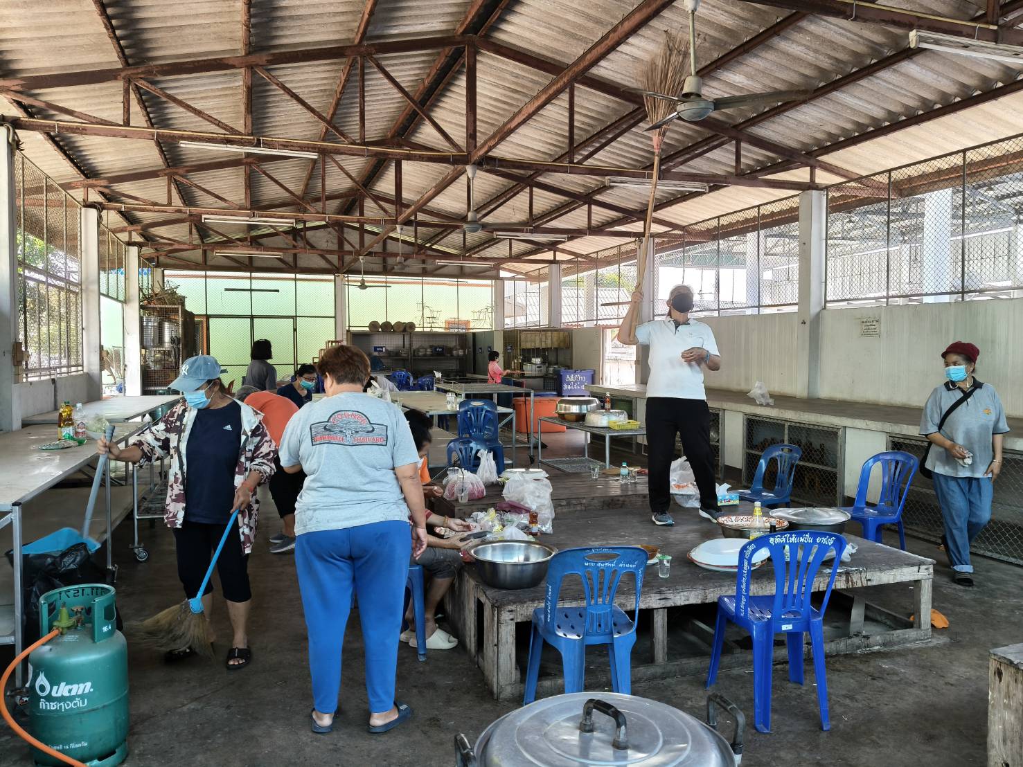– กลุ่มสตรีทำความสะอาดโรงครัว