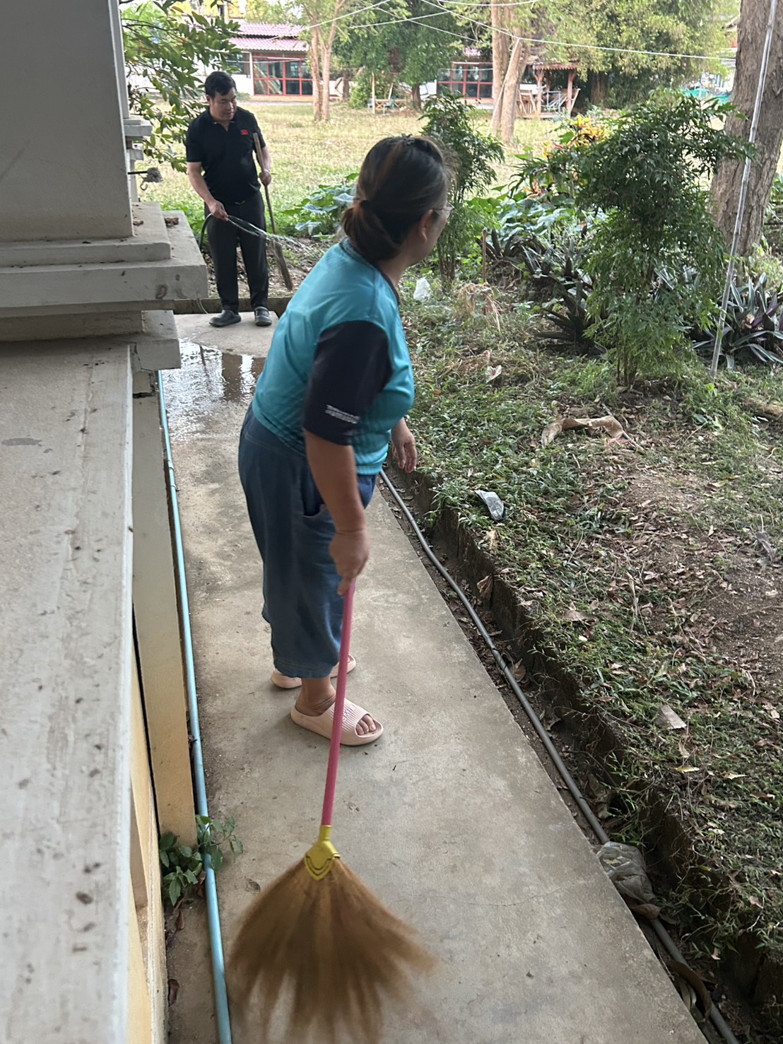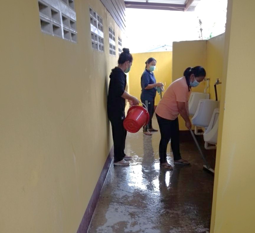 5. กลุ่มสตรีชุมชนบ้านชมพู ทำความสะอาดลานวัดและห้องน้ำวัด