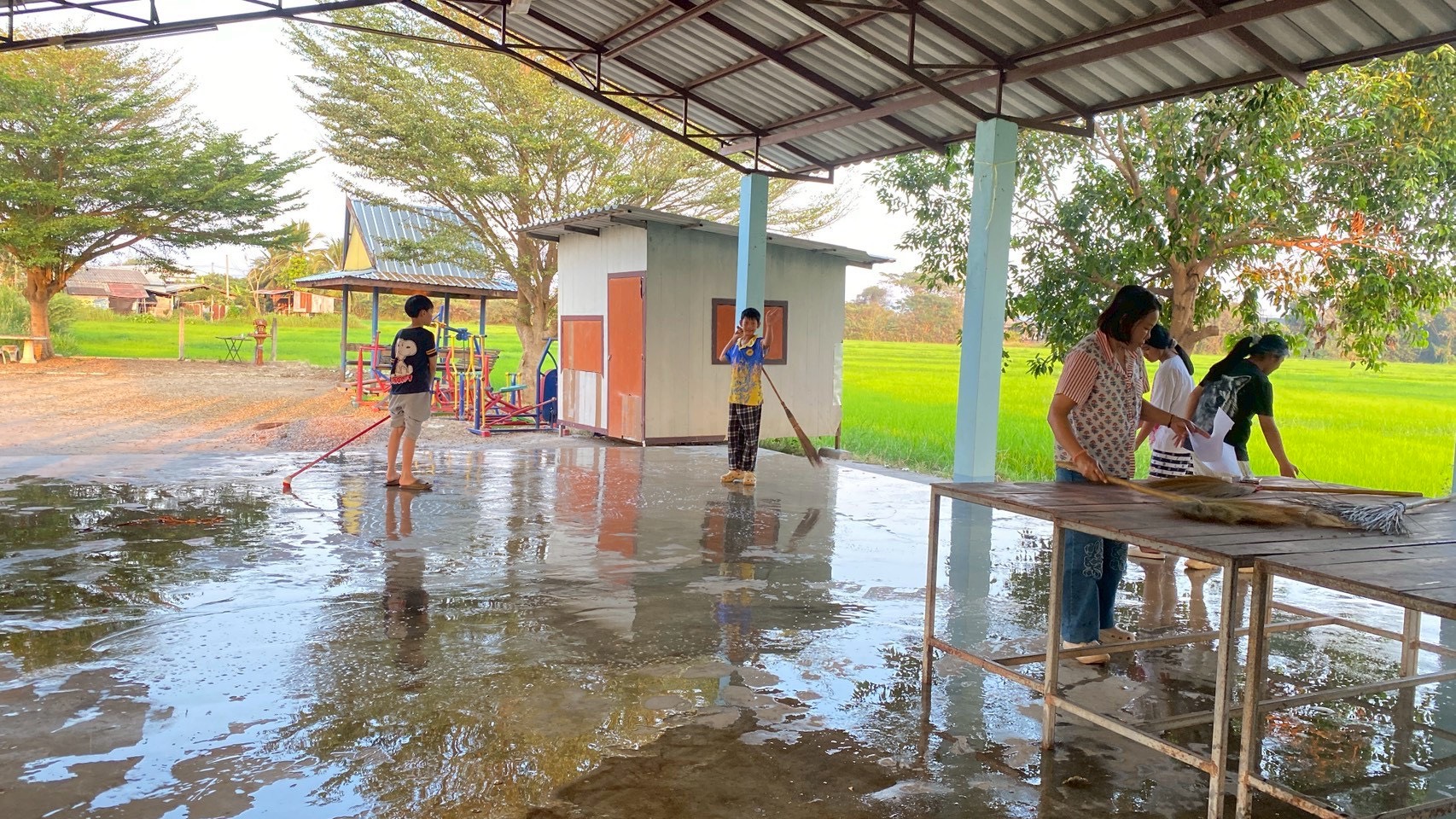 – กลุ่มสตรีทำความสะอาดศาลาอเนกประสงค์