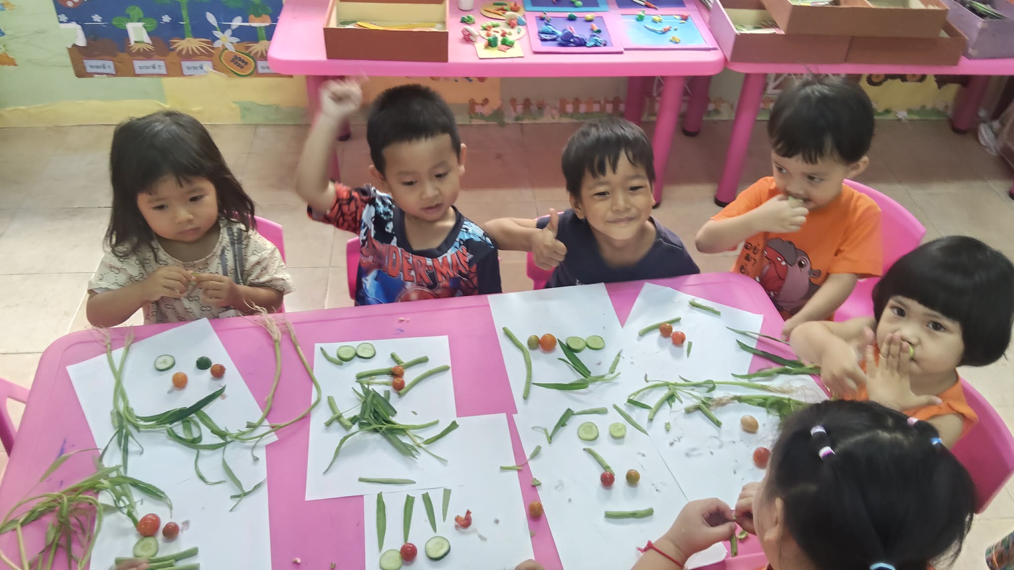 ศูนย์พัฒนาเด็กเล็กบ้านกาด จัดกิจกรรมสรุปโครงงานทดลองเรื่องผักแปลงร่าง เด็กๆได้เรียนรู้เกี่ยวกับ ชื่อผักชนิดต่างๆ และได้ทำกิจกรรมศิลปะ นำผักแต่ละชนิด มาเรียงเป็นรูปอวัยวะบนใบหน้า ฝึกจินตนาการของเด็กๆ