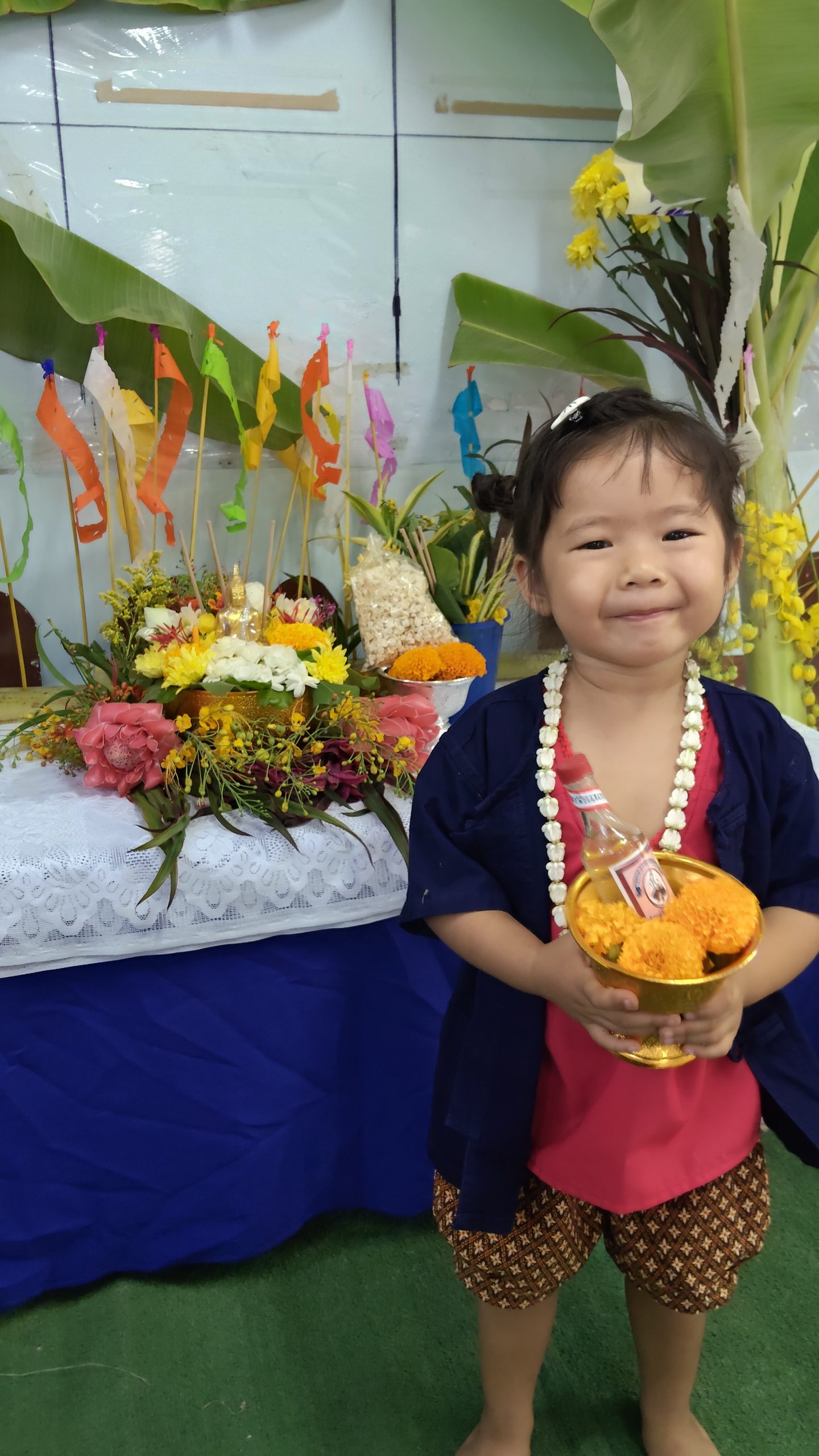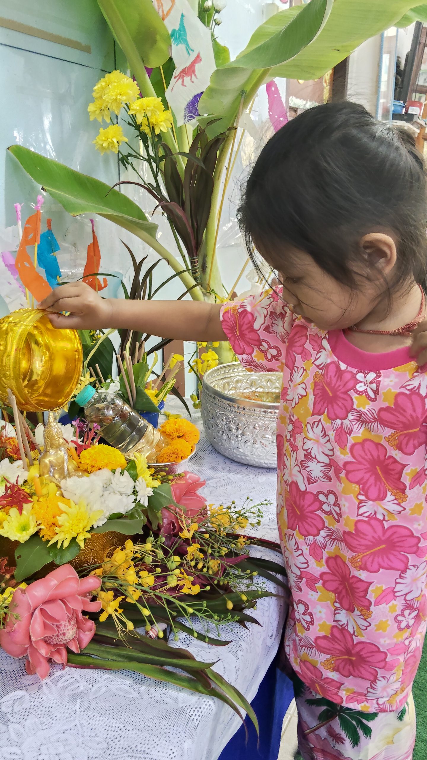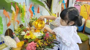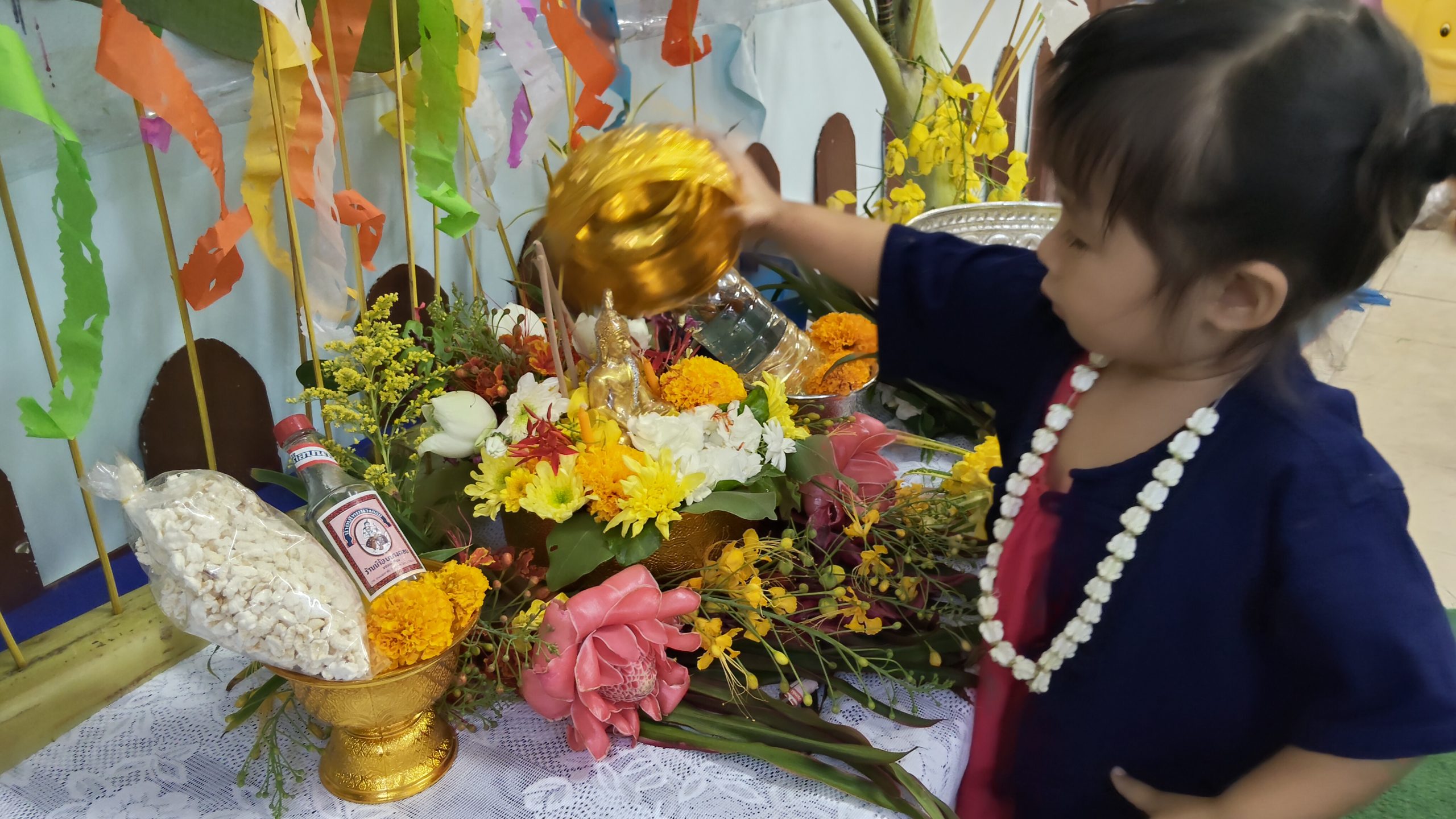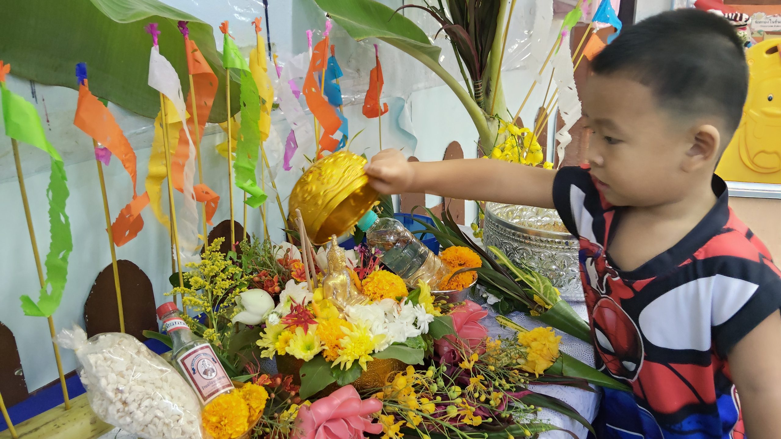ศูนย์พัฒนาเด็กเล็กบ้านกลางจัดกิจกรรมวันสงกรานต์เด็กๆได้นำดอกไม้ธูปเทียนข้าวตอกและน้ำอบร่วมกันสรงน้ำพระในวันนี้