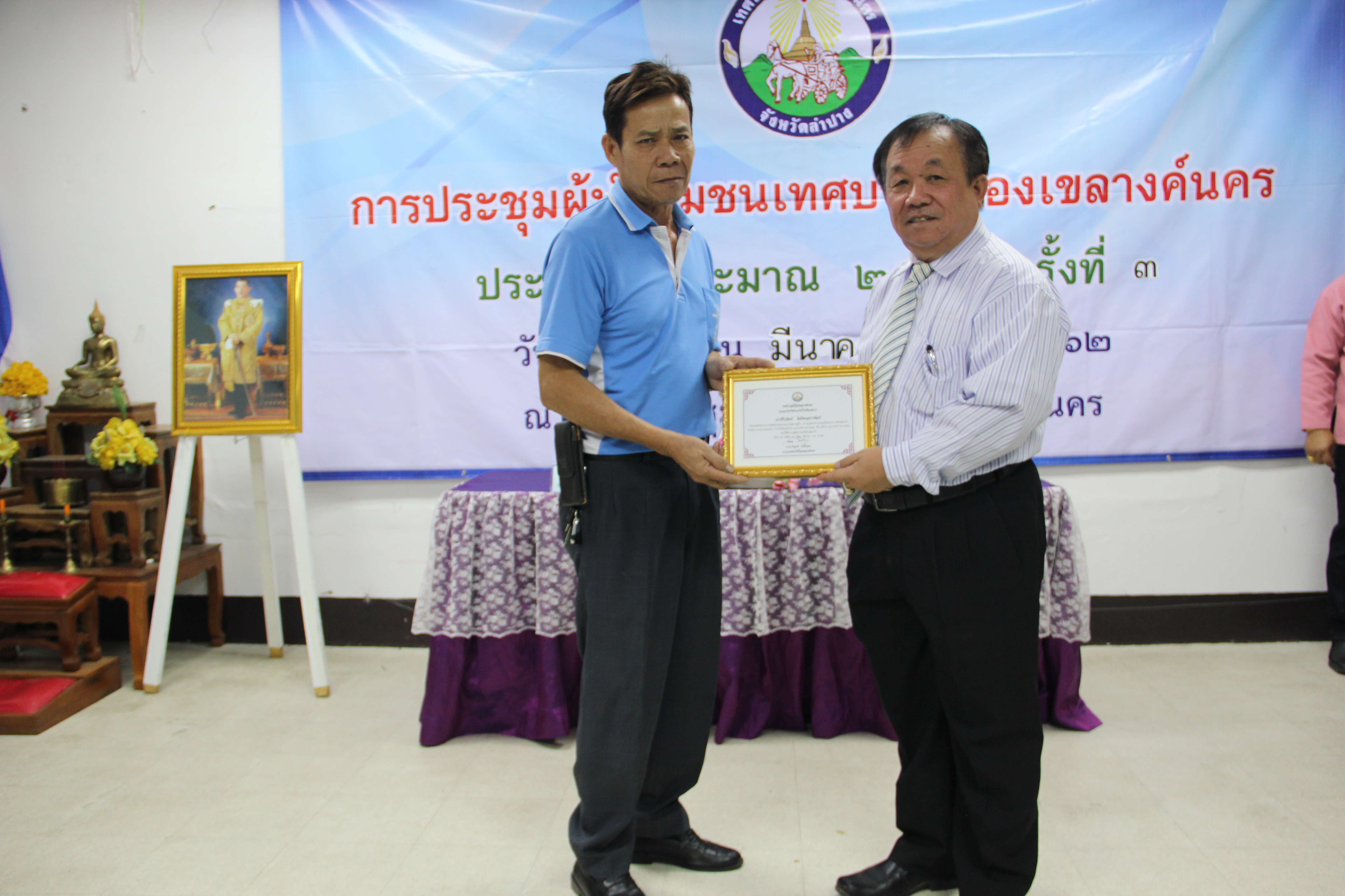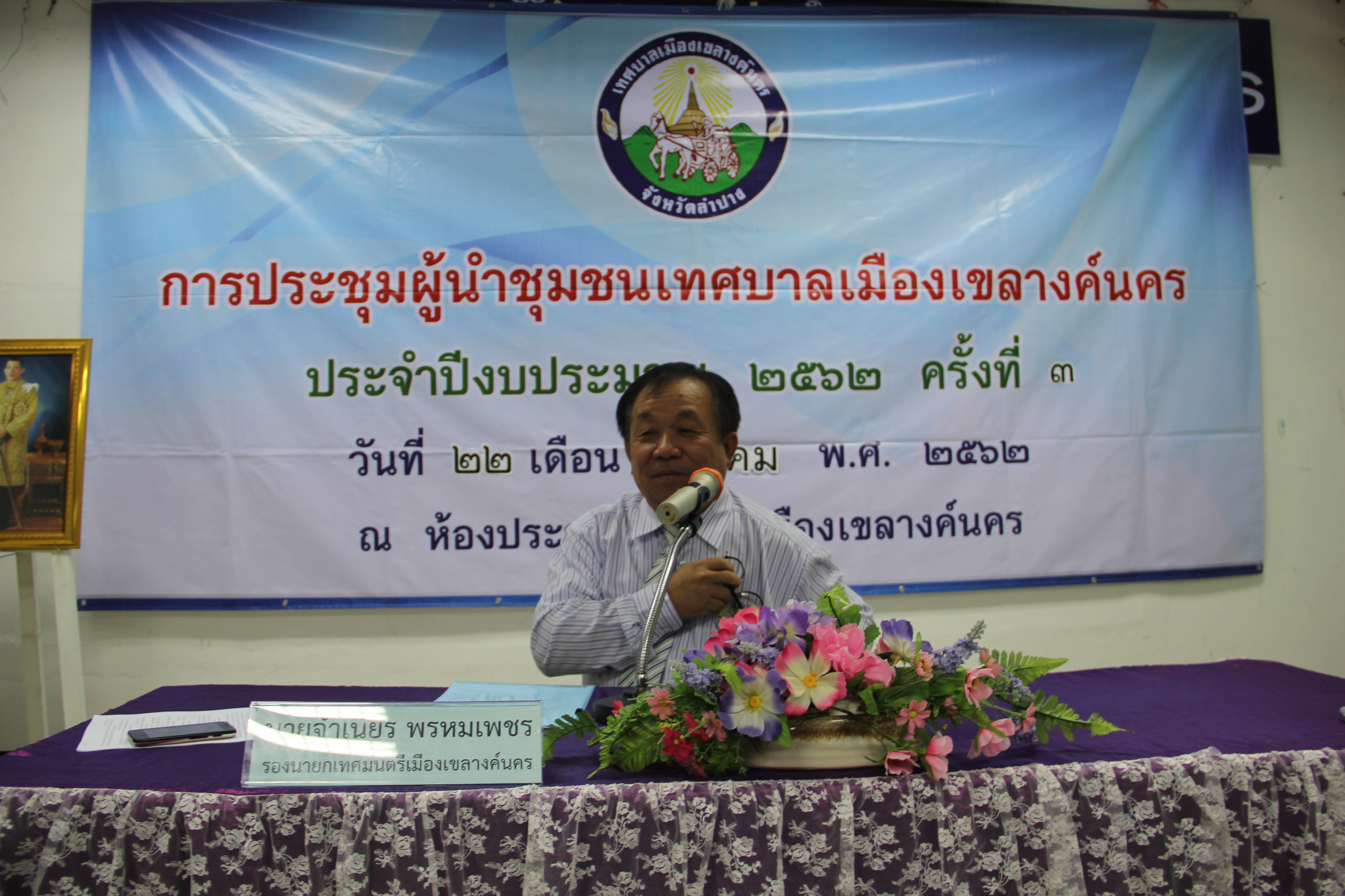 วันที่ 22 มีนาคม 2561 เวลา 09.00 น. นายไพฑูรย์ โพธิ์ทอง นายกเทศมนตรีเมืองเขลางค์นคร มอบหมายให้นายจำเนียร พรหมเพชร รองนายกเทศมนตรีเมืองเขลางค์นคร เป็นประธานในการประชุมผู้นำชุมชน ครั้งที่ 3 ประจำปีงบประมาณ 2562 โดยมีคณะผู้บริหาร สมาชิกสภาเทศบาล และหัวหน้าส่วนราชการร่วมเป็นเกียรติ ทั้งนี้ได้รับร่วมพบปะกับผู้นำชุมชนในเขตเทศบาลเมืองเขลางค์นครเเละมีการมอบเกียรติบัตรให้เเก่ประธานชุมชน นอกจากนั้นในที่ประชุมยังมีการแลกเปลี่ยนความคิดเห็นในเรื่องต่างๆระหว่างเทศบาลเมืองเขลางค์นครกับชุมชน เพื่อประโยชน์ต่อประชาชนในชุมชนต่อไป ณ ห้องประชุมเทศบาลเมืองเขลางค์นคร โรงเรียนบ้านดอนตัน (เดิม) หมู่ที่ 9 ตำบลชมพู อำเภอเมืองลำปาง จังหวัดลำปาง
