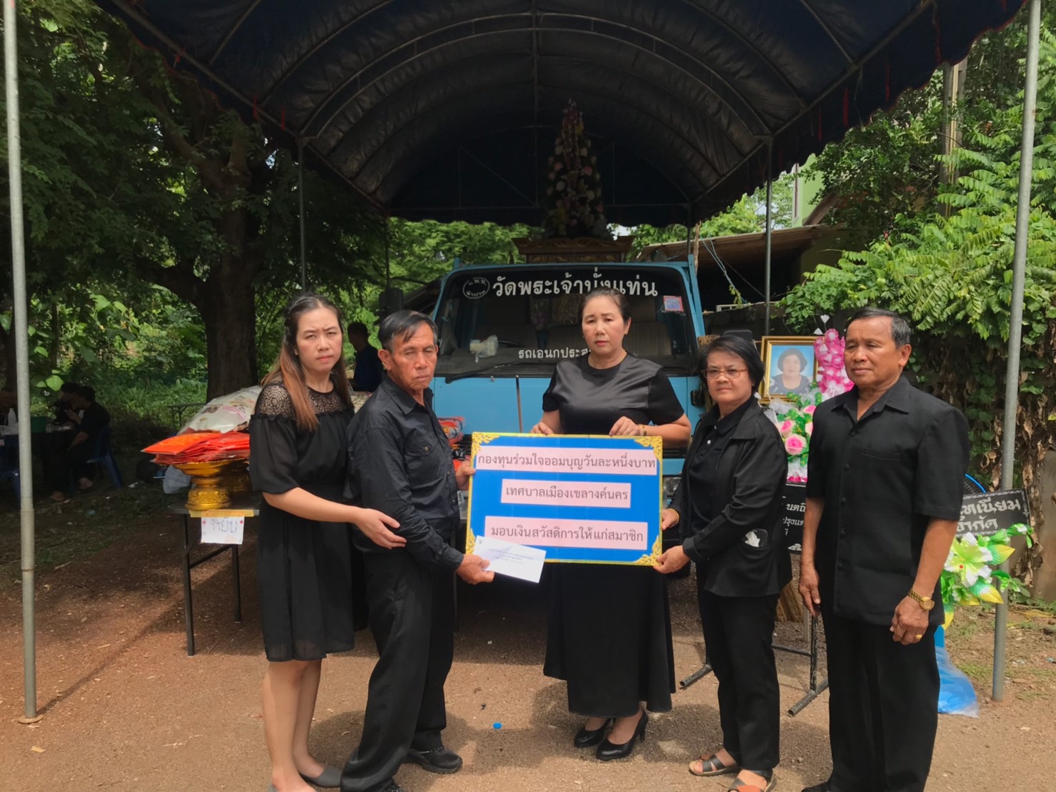 มอบเงินสวัสดิการด้านเสียชีวิตของกองทุนร่วมใจออมบุญวันละหนึ่งบาทเทศบาลเมืองเขลางค์นคร