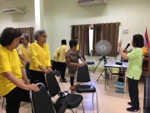 - อบรมให้ความรู้แก่ผู้สูงอายุ เรื่อง “การเคลื่อนไหวร่างกายประกอบเพลงเพื่อสุขภาพสำหรับผู้สูงอายุ (บาสโลบ และไลน์แดนซ์ ชะชะช่า)” วิทยากรโดย สถาบันการพลศึกษา วิทยาเขตลำปาง