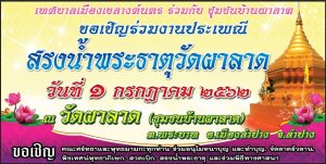 เทศบาลเมืองเขลางค์นครร่วมกับชุมชนบ้านผาลาด ได้กำหนดจัดงานสรงน้ำพระธาตุ ณ วัดผาลาด ชุมชนบ้านผาลาด ตำบลพระบาท ในวันที่ 1 กรกฎาคม 2562 โดยมีวัตถุประสงค์เพื่ออนุรักษ์และส่งเสริมขนบธรรมเนียมที่ดีงามของท้องถิ่นไว้ ถ่ายทอดขนบธรรมเนียม ประเพณีอันดีงามให้เด็ก เยาวชน และประชาชนได้รับทราบ รวมทั้งสร้างความรัก ความสามัคคีในหมู่คณะ ตลอดจนปลูกฝังให้ประชาชนมีส่วนร่วมในการรักษา วัฒนธรรมอันดีงามและทำนุบำรุงพระพุทธศาสนาของท้องถิ่นไว้แบบบูรณาการจึงขอเชิญ คณะศรัทธาและพุทธมามกะทุกท่าน ร่วมอนุโมทนาบุญ และทำบุญ , สรงน้ำพระธาตุ และร่วมพิธีทางศาสนา ในงานประเพณีสรงน้ำพระธาตุวัดผาลาด