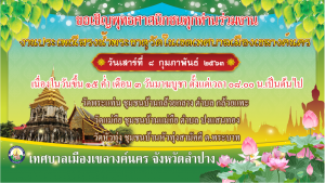- 09.30 น. ณ วัดแม่กืย ชุมชนบ้านแม่กืย ตำบลปงแสนทอง