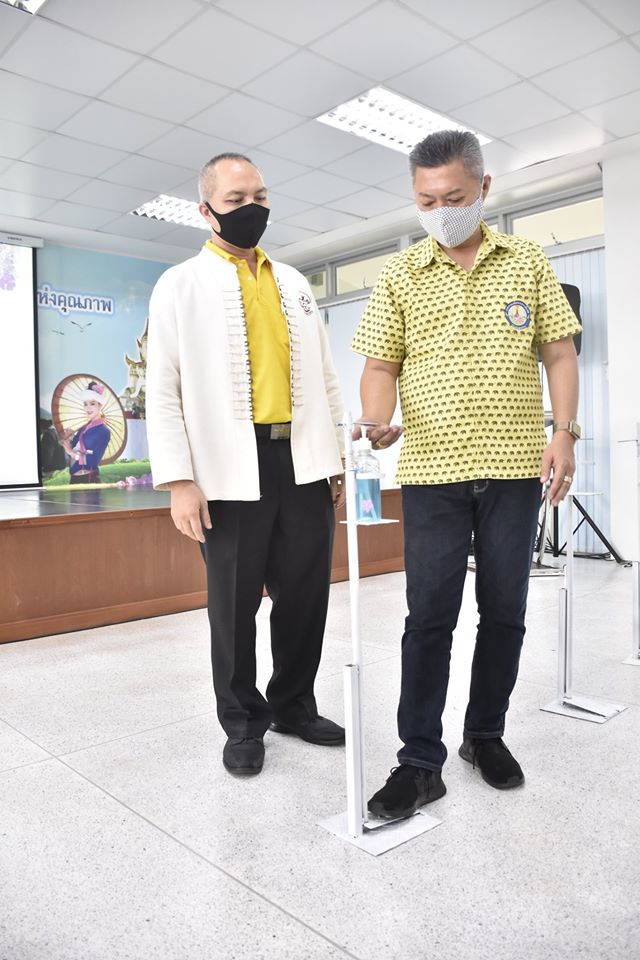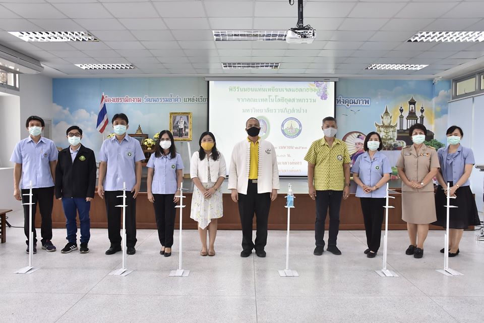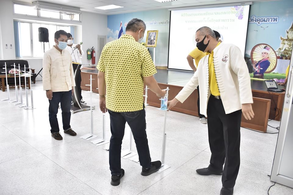 รับมอบแท่นเหยียบเจลแอลกอฮอล์ ในวันที่ 27 เมษายน 2563 เวลา 10.00 น. นายไพฑูรย์ โพธิ์ทอง นายกเทศมนตรีเมืองเขลางค์นคร พร้อมด้วยคณะผู้บริหาร และหัวหน้าส่วนราชการร่วมให้การต้อนรับผู้ช่วยศาสตราจารย์เอกรัฐ อินต๊ะวงศา ผู้ช่วยอธิการบดีด้านบริหารทั่วไป และอาจารย์อัจฉริยา ครุธาโรจน์ ผู้ช่วยอธิการบดีด้านวิเทศสัมพันธ์ มหาวิทยาลัยราชภัฏลำปาง มอบแท่นเหยียบเจลแอลกอฮอล์ที่ดำเนินการผลิตโดยสำนักงานอธิการบดี และคณะเทคโนโลยีอุตสาหกรรม มหาวิทยาลัยราชภัฏลำปาง จำนวน 11 ชิ้นให้กับเทศบาลเมืองเขลางค์นคร และ ตัวแทนจากโรงพยาบาลส่งเสริมสุขภาพตำบลทั้ง 7 แห่งในเขตพื้นที่เทศบาลเมืองเขลางค์นคร เพื่อหลีกเลี่ยงการสัมผัสด้วยมือโดยตรง และร่วมป้องกันการแพร่ระบาดของโรคไวรัสโควิด-19 อีกด้วย ณ ห้องประชุมเขลางค์นคร ชั้น 3 สำนักงานเทศบาลเมืองเขลางค์นคร
