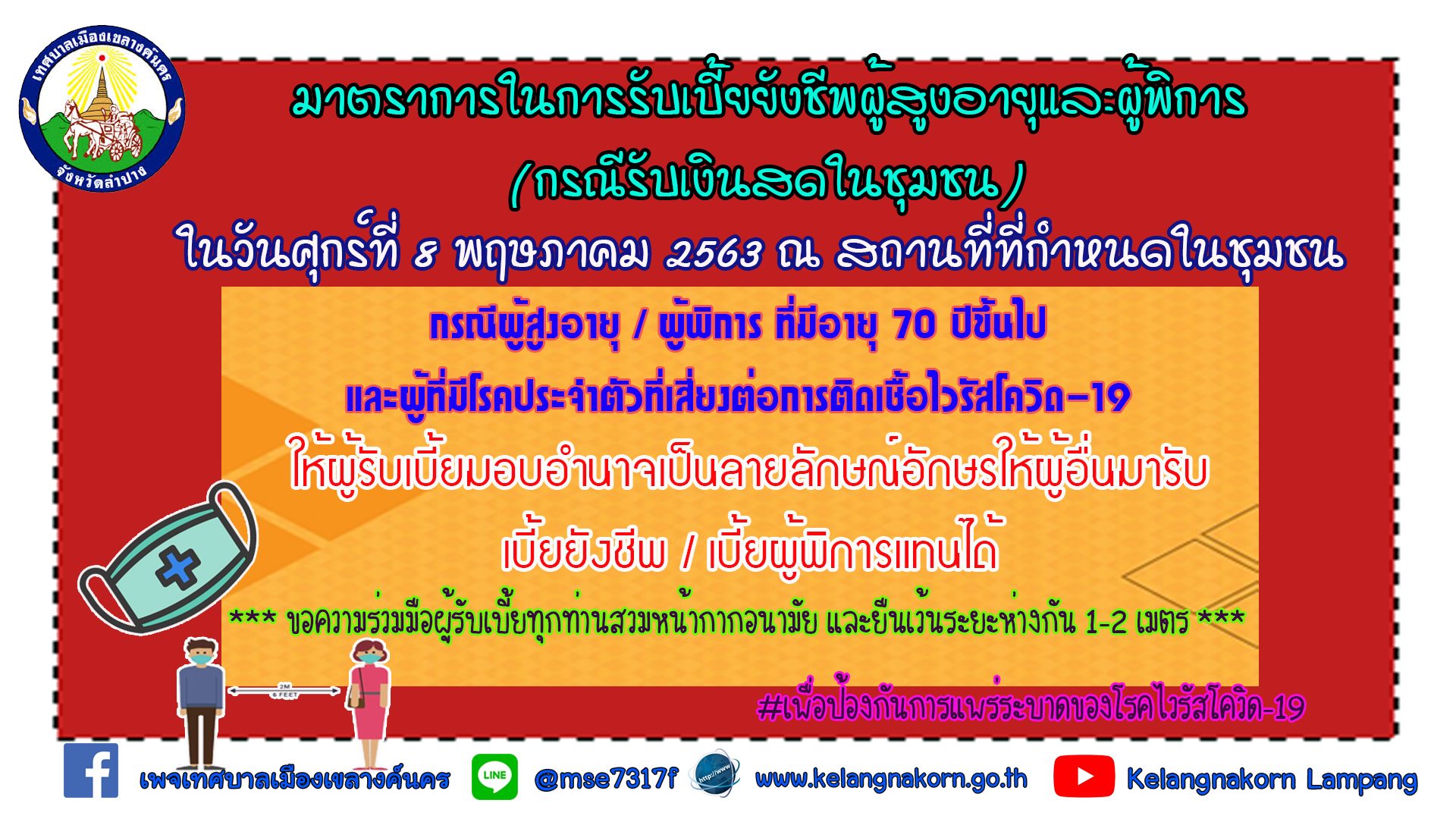 กำหนดการลงพื้นที่มอบเบี้ยยังชีพผู้สูงอายุและผู้พิการ (กรณีรับเงินสดในชุมชน) ประจำเดือน พฤษภาคม 2563 ณ สถานที่ที่กำหนดในชุมชน