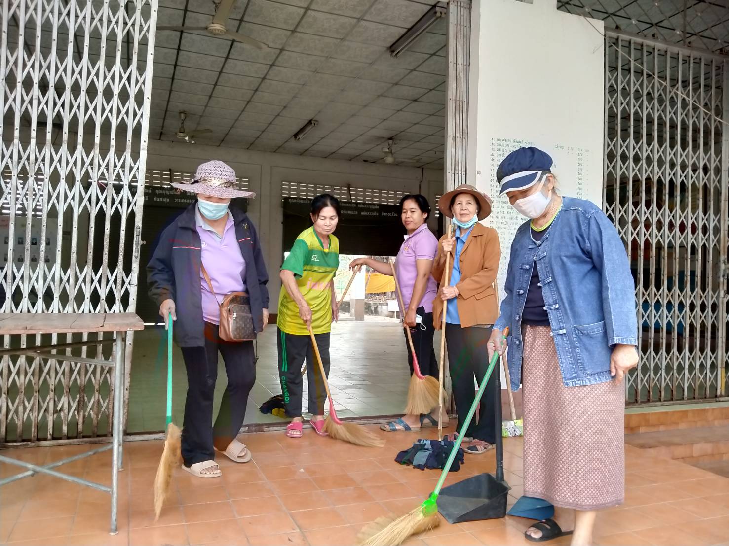 1. กลุ่มสตรีชุมชนบ้านลำปางกลางตะวันตก ทำความสะอาดวัดและจัดเตรียมสถานที่สำหรับทำโครงการป้องกัน Covid-19