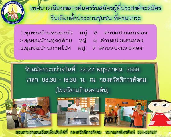 รับสมัครผู้ที่ประสงค์จะสมัครรับเลือกตั้งเป็นประธานชุมชน