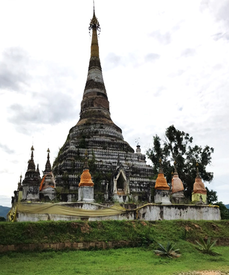 เจดีย์พระฤาษี เริ่มการสร้างโดยฤาษี อูส่วยหล่า และคณะศรัทธาเป็นจำนวนมากเมื่อปี พ.ศ.๒๔๗๕ รูปทรงคล้ายเจดีย์ทององค์แรก ลักษณะงดงามด้านเป็นสถาปัตยกรรมแบบพม่า เป็นเจดีย์รามัญฐานแคบ มีส่วนซุ้มรายรอบเจดีย์ทรงกลม