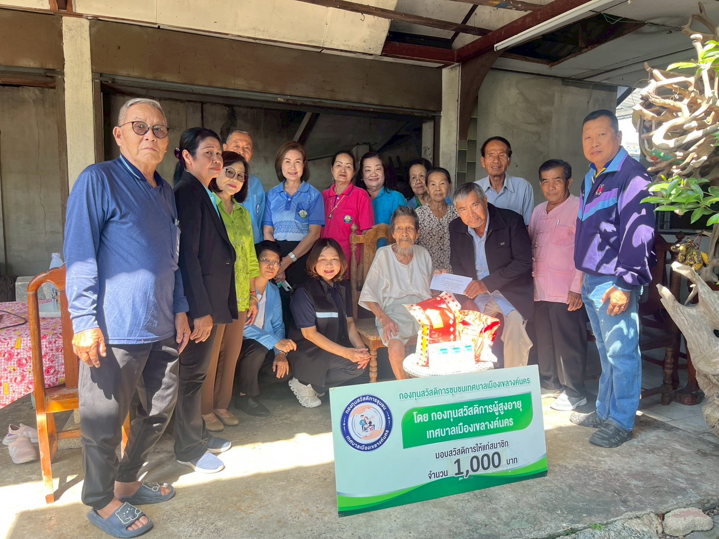 ในวันที่ 19 พฤศจิกายน 2567 กองทุนสวัสดิการชุมชนเทศบาลเมืองเขลางค์นคร โดย กองทุนสวัสดิการผู้สูงอายุเทศบาลเมืองเขลางค์นคร มอบเงินสวัสดิการด้านสาธารณประโยชน์ โดยมีคณะกรรมการกองทุนฯ เป็นตัวแทนมอบสวัสดิการให้แก่ นายบุญส่ง ปินตาคำ บ้านเลขที่ 317/2 ชุมชนบ้านหนองห้าตะวันออก หมู่ที่ 7 ตำบลพระบาท อำเภอเมืองลำปาง จังหวัดลำปาง จำนวน 900 บาท