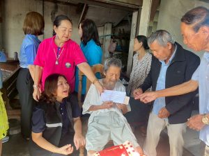 ในวันที่ 22 กันยายน 2566 กองทุนสวัสดิการชุมชนเทศบาลเมืองเขลางค์นคร โดย กองทุนร่วมใจออมบุญวันละหนึ่งบาทเทศบาลเมืองเขลางค์นคร มอบเงินสวัสดิการด้านสาธารณประโยชน์ โดย นายไพฑูรย์ โพธิ์ทอง มอบหมายให้คณะผู้บริหาร ลงพื้นที่ร่วมกับคณะกรรมการกองทุนฯ โดยมี นางศุภวรรณ ศรีวิไล ประธานกองทุนฯ และคณะกรรมการกองทุนฯ เป็นตัวแทนมอบสวัสดิการให้แก่นางบุญมี ขันโท บ้านเลขที่ 41/1 ชุมชนบ้านป่ากล้วย หมู่ที่ 4 ตำบลปงแสนทอง อำเภอเมืองลำปาง จังหวัดลำปาง จำนวน 800 บาท