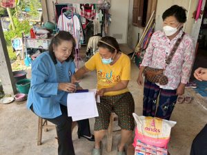 ในวันที่ 11 ตุลาคม 2565 กองทุนสวัสดิการชุมชนเทศบาลเมืองเขลางค์นคร โดย กองทุนสวัสดิการอาสาสมัครสาธารณสุขเขต รพ.สต. ศรีหมวดเกล้า (วันละบาท) มอบเงินสวัสดิการด้านสาธารณประโยชน์ โดยมี นางสาวแสงดาว จันทบ ประธานกองทุนฯ และคณะกรรมการกองทุนฯ โดยมีนางทองคำ ทิวงค์ทราย ประธานอสม. ชุมชนบ้านร้องเป็นผู้รับมอบแทน เนื่องจากนางเพ็ญนภา ฝึกฝน ได้ติดเชื้อโควิด -19 ในวันที่คณะกรรมการกองทุนฯ ไปมอบสวัสดิการ บ้านเลขที่ 115 ชุมชนบ้านร้อง หมู่ที่ 12 ตำบลชมพู อำเภอเมืองลำปาง จังหวัดลำปาง จำนวน 500 บาท