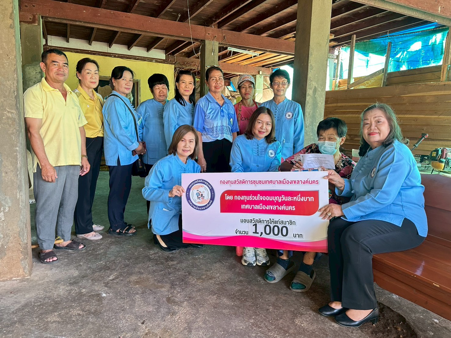 ในวันที่ 20 ตุลาคม 2568 กองทุนสวัสดิการชุมชนเทศบาลเมืองเขลางค์นคร โดย กองทุนร่วมใจออมบุญวันละหนึ่งบาทเทศบาลเมืองเขลางค์นคร มอบเงินสวัสดิการด้านสาธารณประโยชน์ โดยมี นางศุภวรรณ ศรีวิไล ประธานกองทุนฯ และคณะกรรมการกองทุนฯ เป็นตัวแทนมอบสวัสดิการให้แก่นางชื่น ปีละออ บ้านเลขที่ 19 ชุมชนบ้านไร่สันติสุข หมู่ที่ 11 ตำบลปงแสนทอง อำเภอเมืองลำปาง จังหวัดลำปาง จำนวน 1,000 บาท