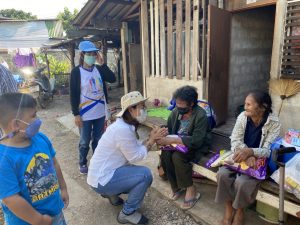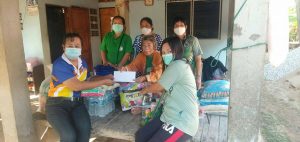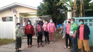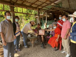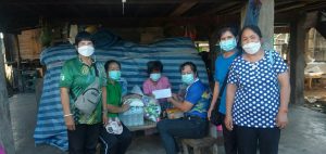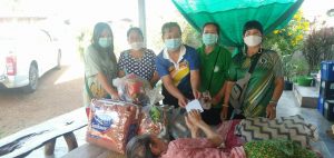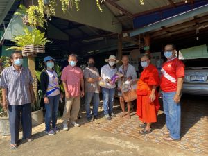 – กลุ่มสตรีร่วมกับกลุ่มผู้สูงอายุมอบเครื่องอุปโภคบริโภคให้ครอบครัวผู้กักตัวจากโรคโควิด – ๑๙ ในชุมชน