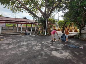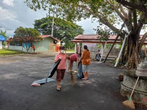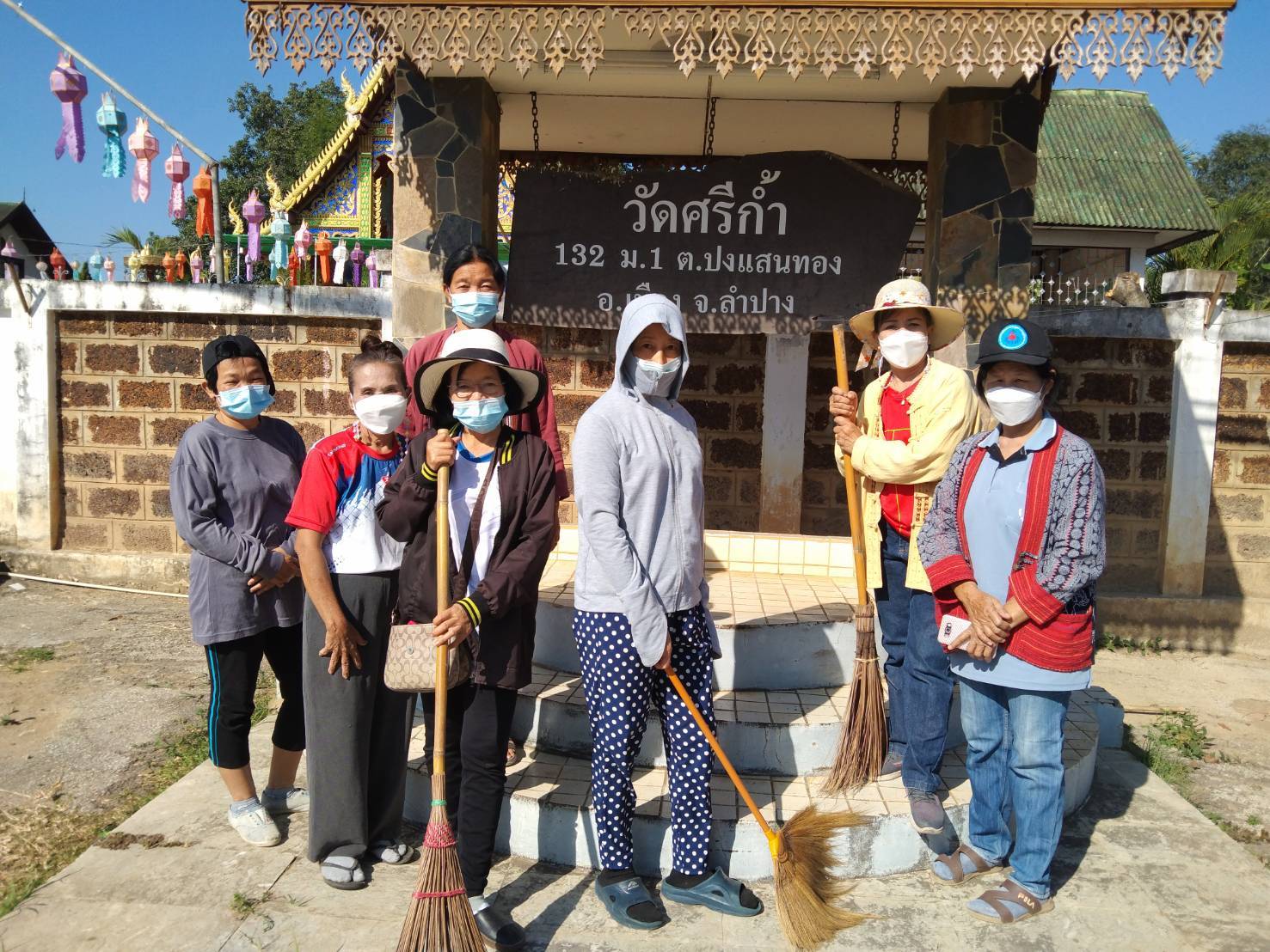 2. กลุ่มสตรีชุมชนบ้านศรีก้ำ ร่วมกับชุมชนทำความสะอาดบริเวณวัดเนื่องในวันพ่อแห่งชาติ