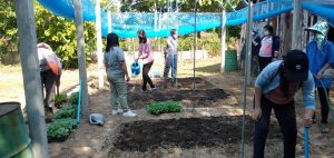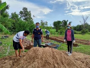2. กลุ่มสตรีชุมชนศรีพูนทรัพย์ ร่วมกับชุมชนจัดทำแปลงเกษตรสมุนไพรต้านโควิด – ๑๙