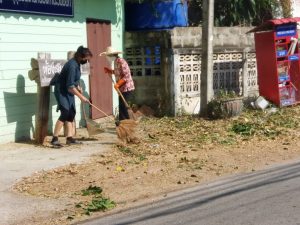 – กลุ่มสตรีร่วมกันทำความสะอาดบริเวณชุมชนเนื่องในวันพ่อแห่งชาติ