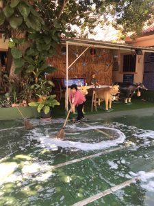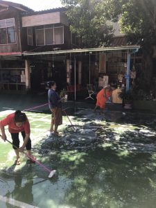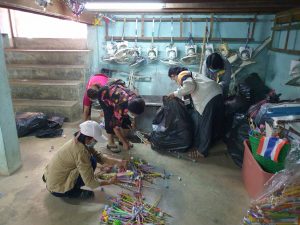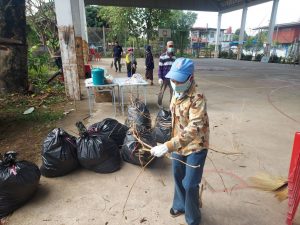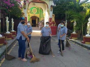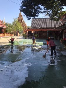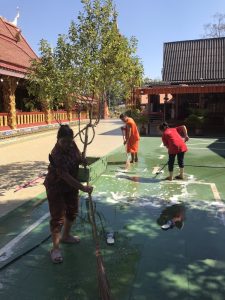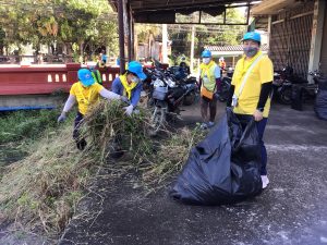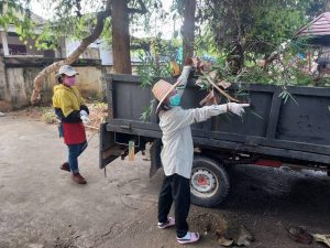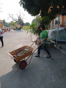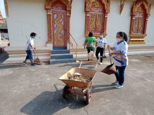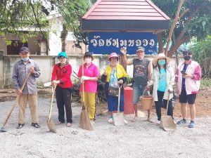 – กลุ่มสตรีทำความสะอาดและเก็บขยะบริเวณวัด