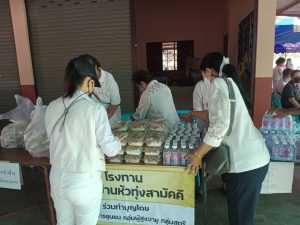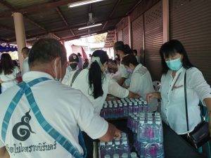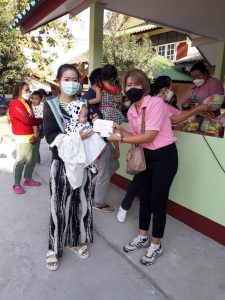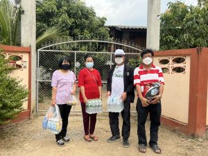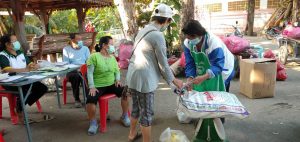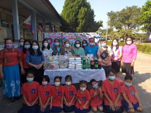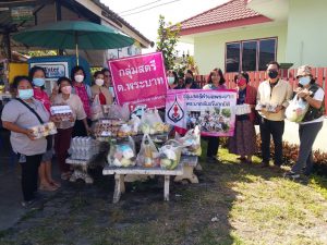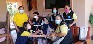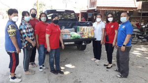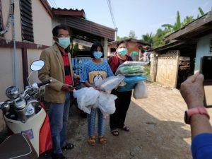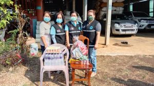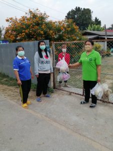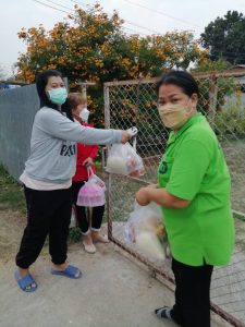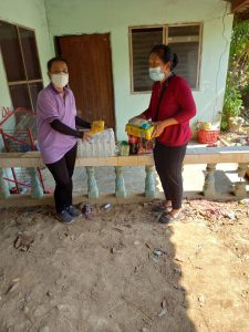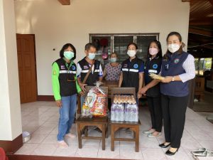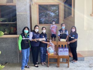 – กลุ่มสตรีมอบเครื่องอุปโภคบริโภคให้ผู้ที่กักตัวจากโรคโควิด – 19 ภายในชุมชน