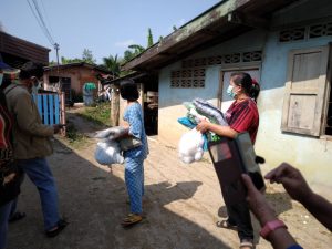 – กลุ่มสตรีร่วมกับชุมชนมอบเครื่องอุปโภคบริโภคให้ผู้ที่กักตัวจากโรคโควิด – 19 ภายในชุมชน