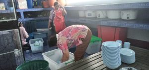 2. กลุ่มสตรีชุมชนบ้านฟ่อน ช่วยกันจัดระเบียบสิ่งของเครื่องเครื่องใช้ในโรงครัววัด