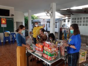 – กลุ่มสตรีมอบสิ่งของเครื่องใช้ช่วยเหลือผู้ที่กักตัวจากโรคโควิด – ๑๙ ในชุมชน