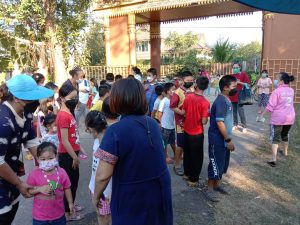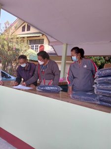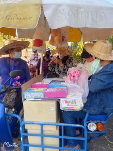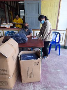– กลุ่มสตรีมอบสิ่งของเครื่องใช้ให้แก่ผู้ที่กักตัวจากโรคโควิด – ๑๙ ภายในชุมชน