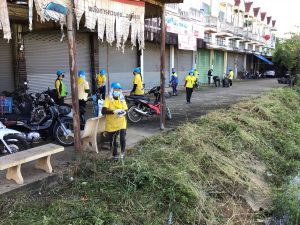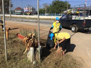 3. กลุ่มสตรีชุมชนบ้านศาลาดอน ทำความสะอาดบริเวณทางเข้าชุมชน