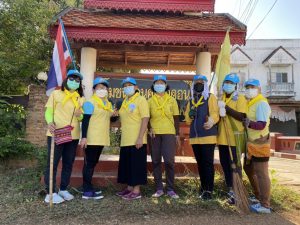 – กลุ่มสตรีร่วมกับผู้สูงอายุทำความสะอาดบริเวณวัดชมภูหลวง