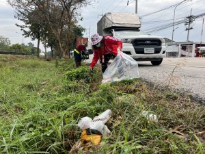 10. กลุ่มสตรีชุมชนบ้านแม่กืย ร่วมกันเก็บขยะบริเวณไหล่ทางถนนสายลำปาง – เชียงใหม่และซอยในชุมชน