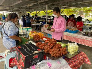 บรรยากาศการจำหน่าย “กิน ชิม ช๊อป ของดีเมืองเขลางค์นคร” ตามโครงการส่งเสริมช่องทางการจำหน่ายสินค้าแก่ผู้ประกอบการในเขตเทศบาลเมืองเขลางค์นคร ทุกสัปดาห์สุดท้ายของเดือน ในวันศุกร์ที่ 29 เมษายน 2565 เวลา 08.00 น. ณ บริเวณโรงจอดรถด้านหลังอาคารสำนักงานเทศบาลเมืองเขลางค์นคร สำนักงานเทศบาลเมืองเขลางค์นคร หมู่ที่ 12 ตำบลชมพู อำเภอเมืองลำปาง จังหวัดลำปาง