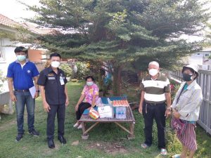 – ร่วมกับ อสม. มอบเครื่องอุปโภคบริโภคให้ผู้ที่กักตัวจากโรคโควิด – ๑๙ ในชุมชน