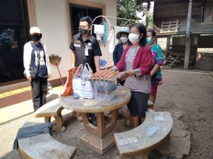 2. กลุ่มสตรีชุมชนบ้านกล้วยกลาง มอบเครื่องอุปโภคบริโภคให้ผู้สูงอายุและผู้ที่กักตัวจากโรคโควิด – 19 ในชุมชน