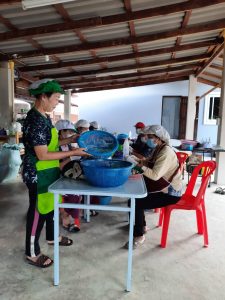 3. กลุ่มสตรีชุมชนบ้านศาลาดอน มอบเครื่องอุปโภคบริโภคให้ผู้ที่กักตัวจากโรคโควิด – ๑๙ ในชุมชน