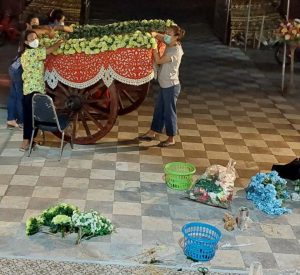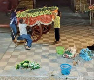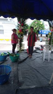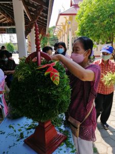 – ช่วยกันจัดดอกไม้งานสรงน้ำพระและแห่ไม้ค้ำศรี