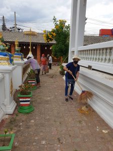 – ช่วยกันทำความสะอาดวัดสันปินไชย