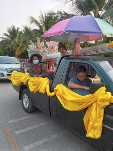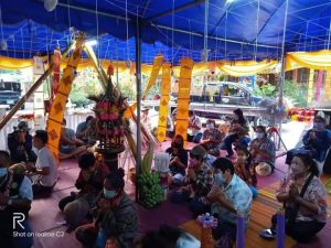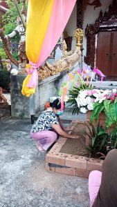 – เตรียมของเพื่อทำพิธีสืบชะตาและทำบุญศาลาบำเพ็ญบุญที่โดนไฟไหม้ไปเมื่อปี 2564