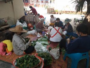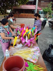 – จัดเตรียมของเพื่อใช้ในพิธีส่งเคราะห์ปีใหม่เมืองในชุมชน