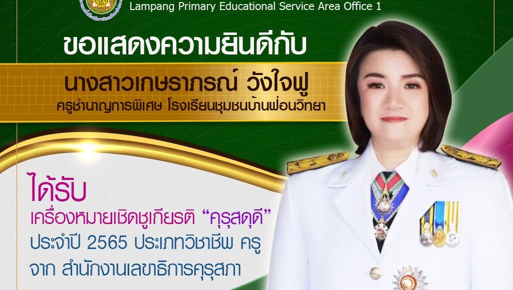 ที่ได้รับเครื่องหมายเชิดชูเกียรติ “คุรุสดุดี” ประจำปี 2565 รางวัลคุรุสภา ระดับจังหวัด ประจำปี 2565 และรางวัลครูผู้สอนดีเด่น ระดับจังหวัด