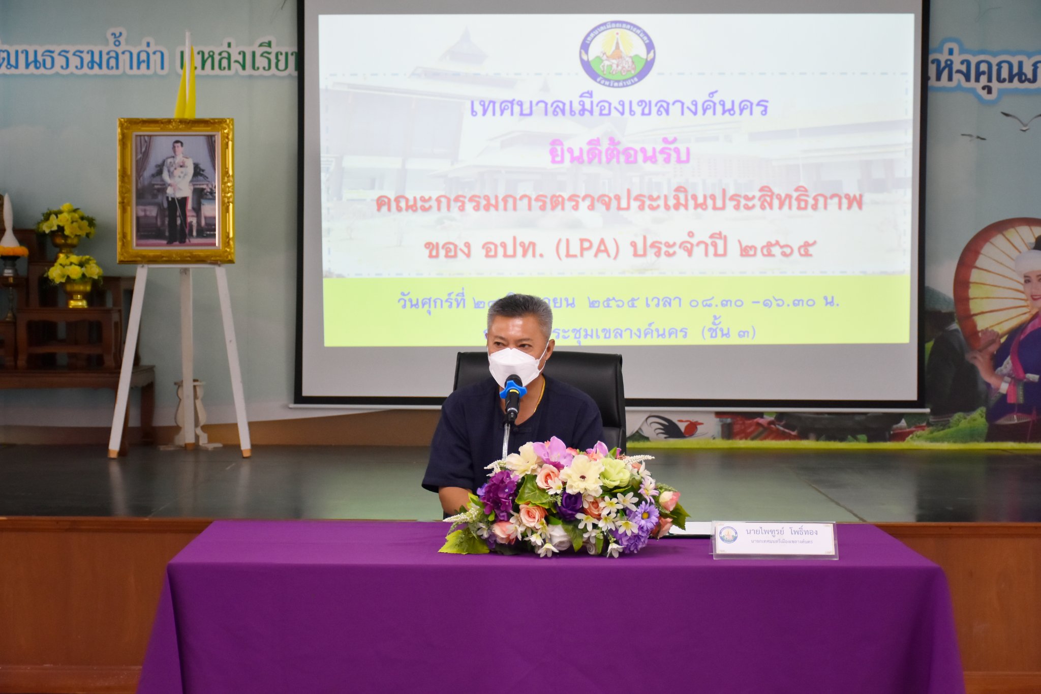 วันที่ 24 มิถุนายน 2565 เวลา 09.00 น. นาย ไพฑูรย์ โพธิ์ทอง นายกเทศมนตรีเมืองเขลางค์นคร พร้อมด้วยคณะผู้บริหาร และหัวหน้าส่วนราชการ ให้การต้อนรับทีมตรวจประเมินประสิทธิภาพขององค์กรปกครองส่วนท้องถิ่น (Local Performance Assessment : LPA) ซึ่งได้เข้าตรวจประเมินประสิทธิภาพฯ ของเทศบาลเมืองเขลางค์นคร ประจำปี 2565 โดยมีการนำเสนอเอกสารผลงาน รับการประเมินสิทธิภาพ 5 ด้าน คือ