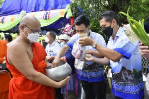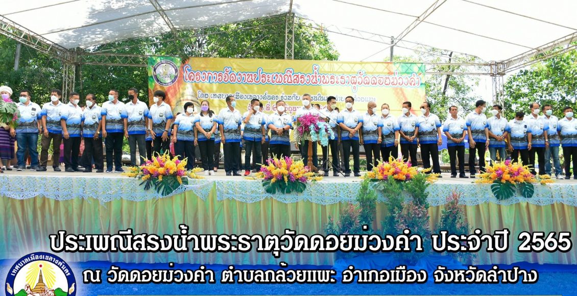 วันที่ 22 มิถุนายน 2565 เวลา 08.00 น. นายไพฑูรย์ โพธิ์ทอง นายกเทศมนตรีเมืองเขลางค์นคร เป็นประธานในพิธีทางศาสนาและพิธีเปิดงานประเพณีสรงน้ำพระธาตุดอยม่วงคำ ประจำปี 2565 พร้อมด้วยคณะผู้บริหาร สมาชิกสภาเทศบาลเมืองเขลางค์นคร และหัวหน้าส่วนราชการ ร่วมทำกิจกรรมพิธีทางศาสนา ซึ่งเทศบาลเมืองเขลางค์นครได้ร่วมกับชุมชนในเขตตำบลกล้วยแพะจัดกิจกรรมขึ้น มีวัตถุประสงค์เพื่ออนุรักษ์และส่งเสริมขนบธรรมเนียมที่ดีงามของท้องถิ่นไว้ รวมทั้งสร้างความรักความสามัคคีในหมู่คณะ ตลอดจนปลูกฝังให้ประชาชนมีส่วนร่วมในการช่วยรักษาวัฒนธรรมอันดีงามของท้องถิ่นไว้ โดยได้รับความร่วมมือจากทุกภาคส่วนในการจัดงานในครั้งนี้ ประกอบด้วย